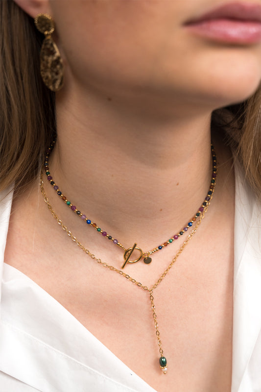 Collier écharpe Liora - Agate noire & Perles d’eau douce