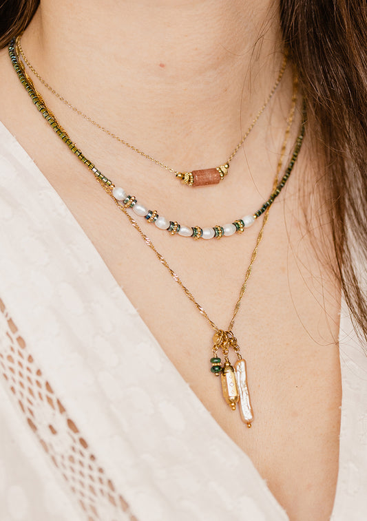 Ras de cou Evan - Coquillages verts et Perles d'eau douce
