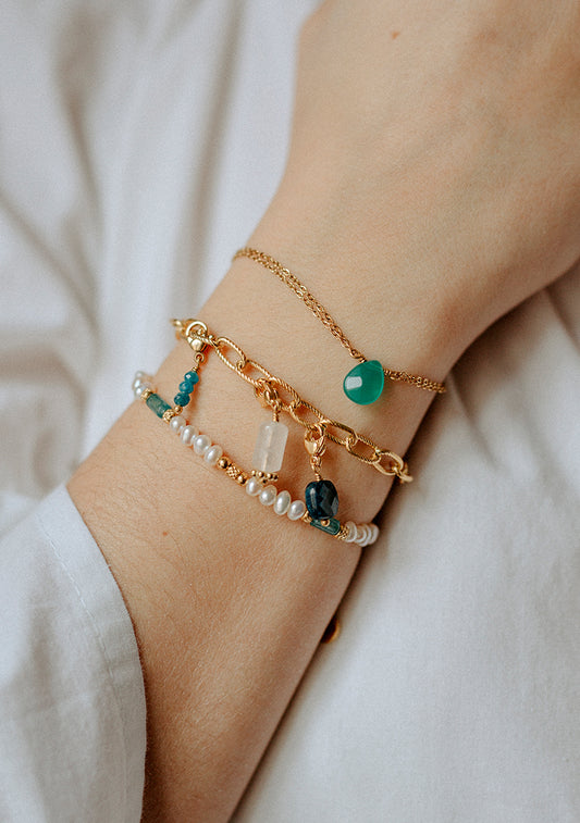 Bracelet Owen - Coquillages verts et Perles d'eau douce