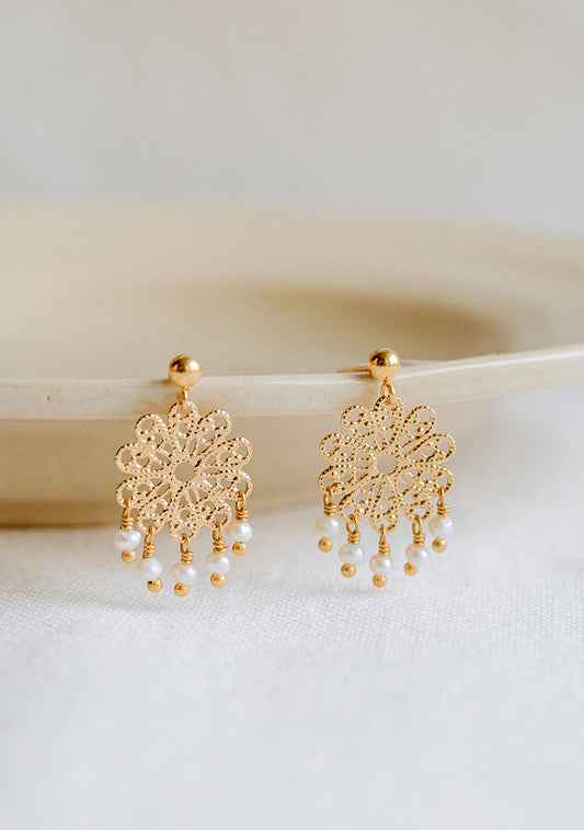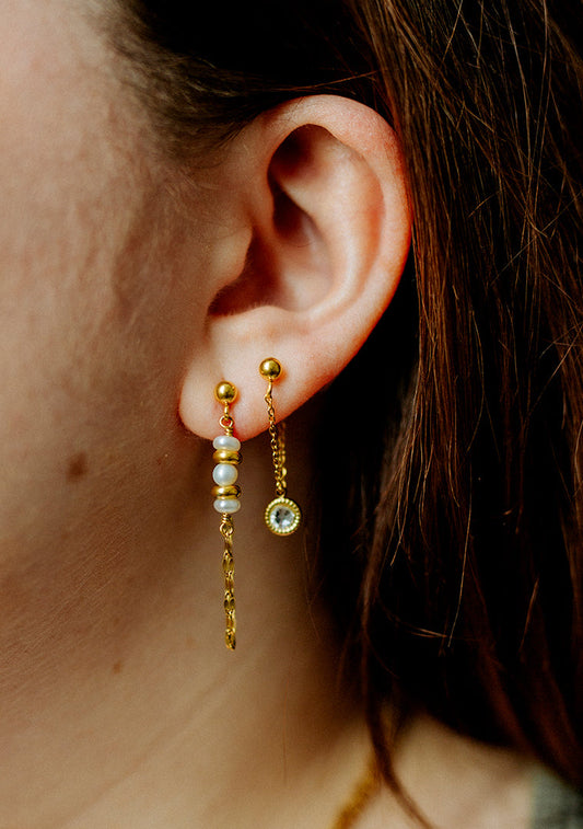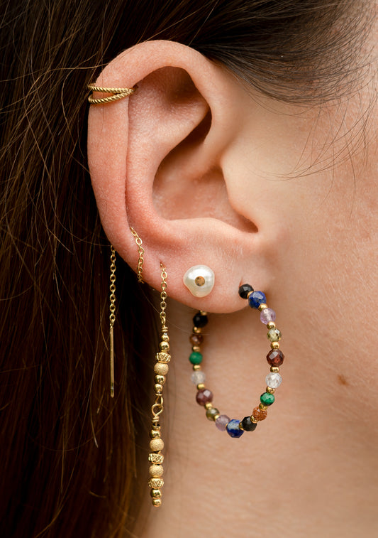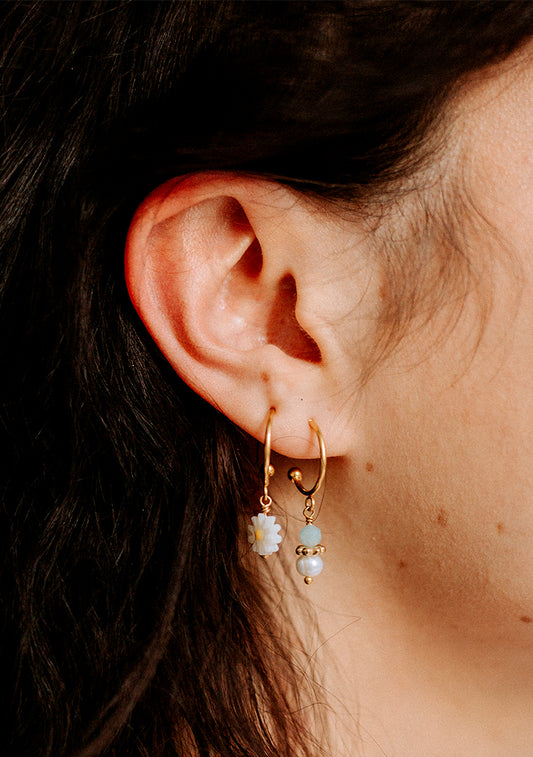 Double boucles Calypso - Perles d’eau douce blanches & verte
