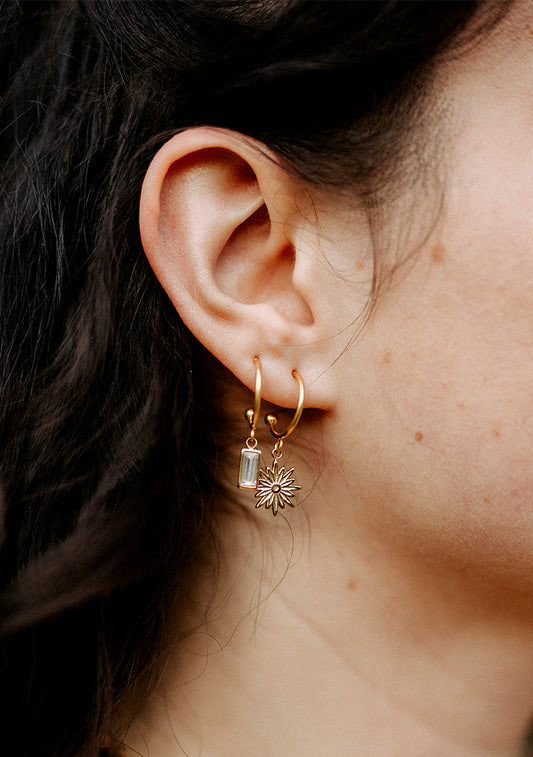 Mini créoles Théa - Pierre de soleil bleu nuit