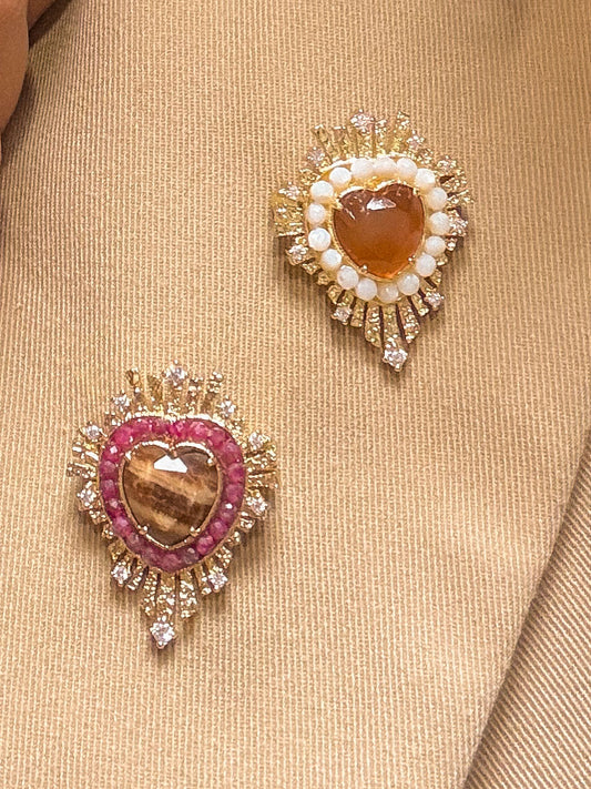 Broche Corazon - Beige & Rose