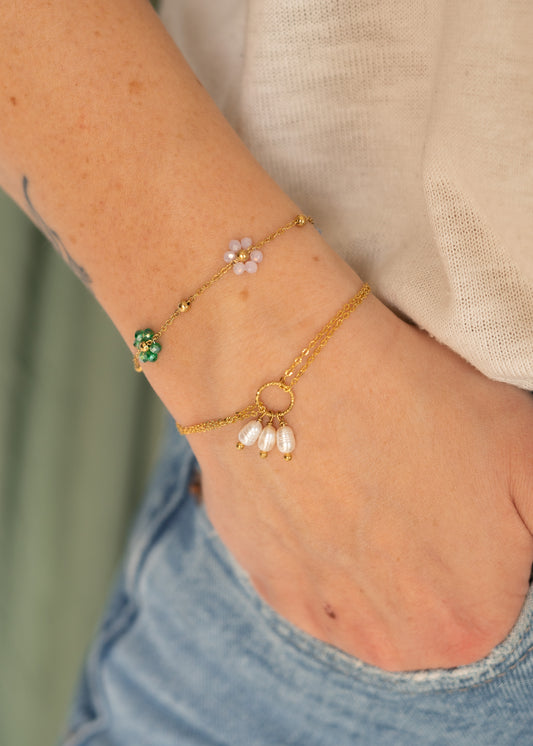 Boucles Calypso - Perles eau douce blanches & vert clair