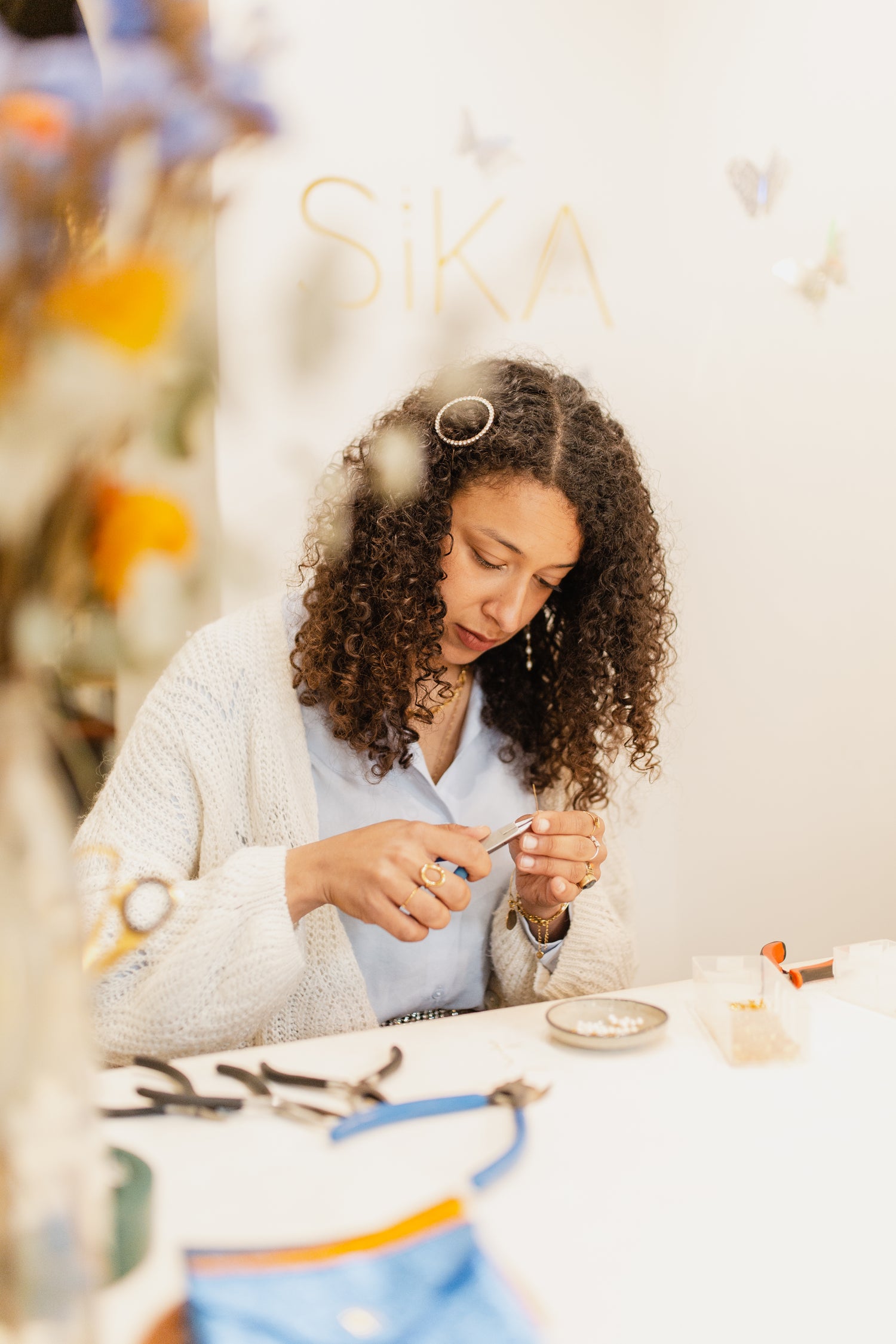 Alors, j’ai créé SIKA Bijoux, une marque éponyme à l’image de toutes les femmes, et qui reflète mes origines auxquelles je suis tant attachée. SIKA signifie « Or » en Mina, un des dialectes du Togo, petit pays d’origine de ma famille. C’est également le prénom de la femme la plus importante à mes yeux, ma maman. Sika est aussi mon second prénom. Tout laisse à penser que j’étais prédestinée à créer des bijoux dorés.