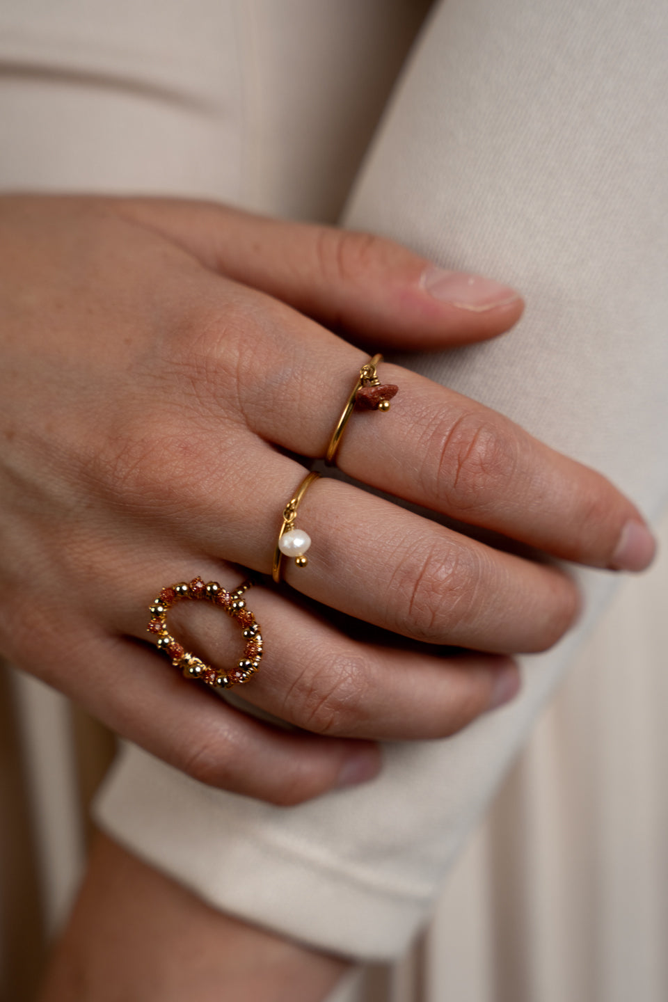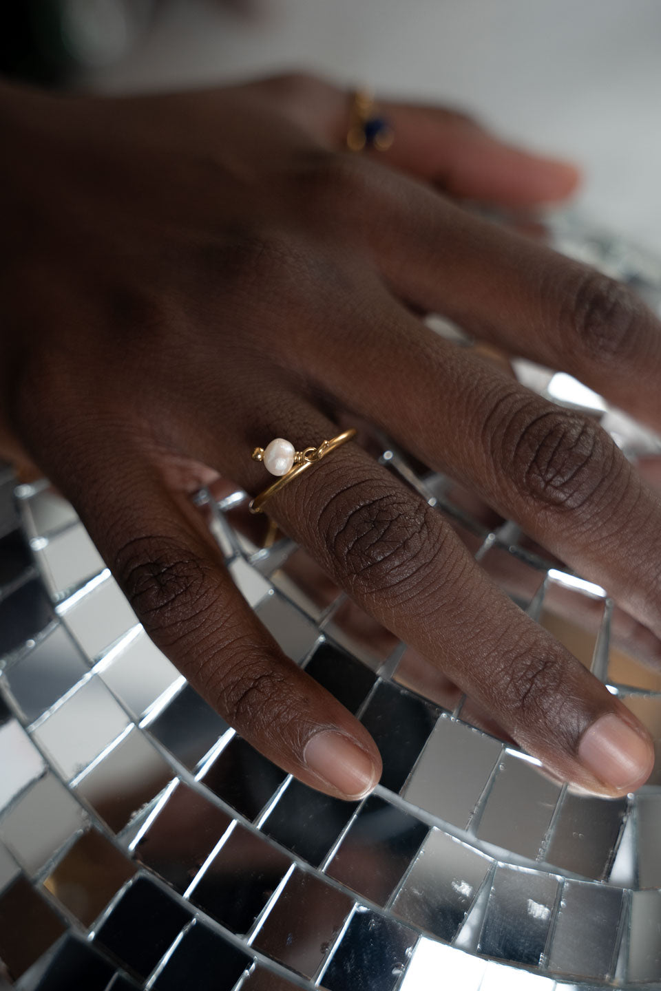 La bague réglable Emy est fabriquée à la main dans mon atelier, Elle est ornée d’une pampille en Perle d'eau douce,
