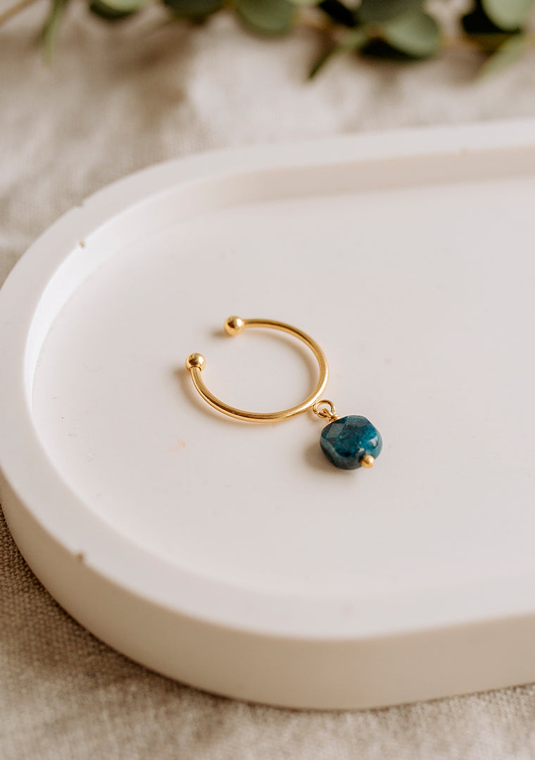 La bague réglable Éva est fabriquée à la main dans mon atelier, Elle est ornée d’une pampille en Apatite,