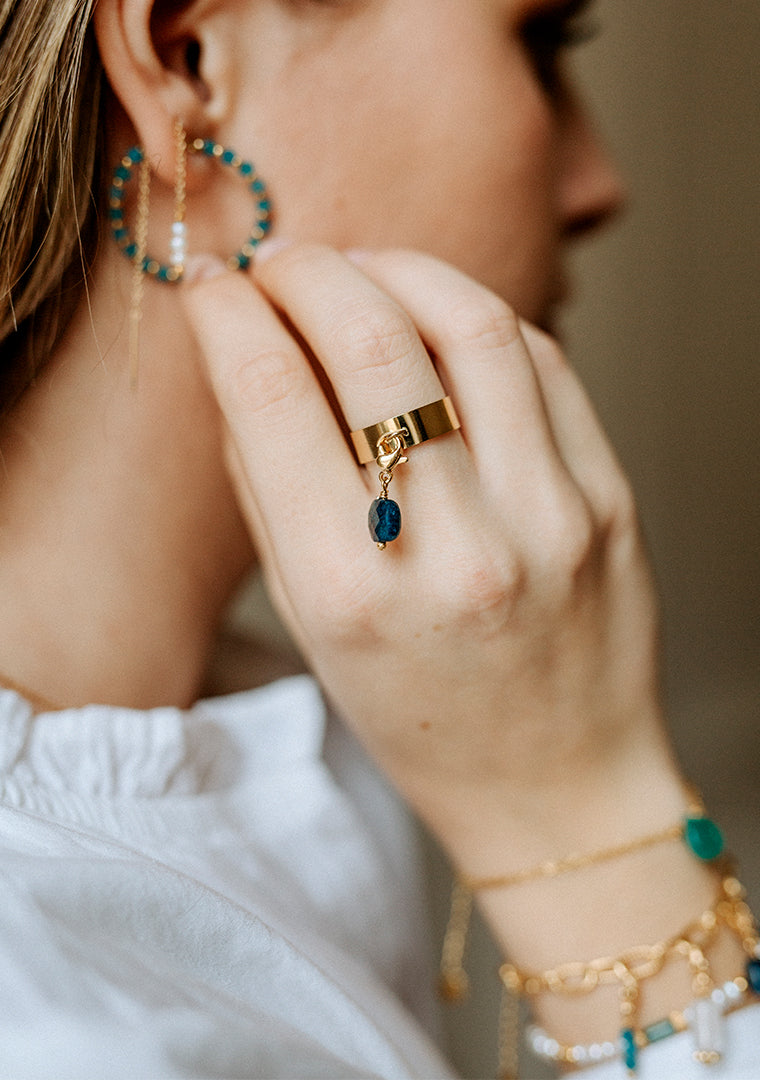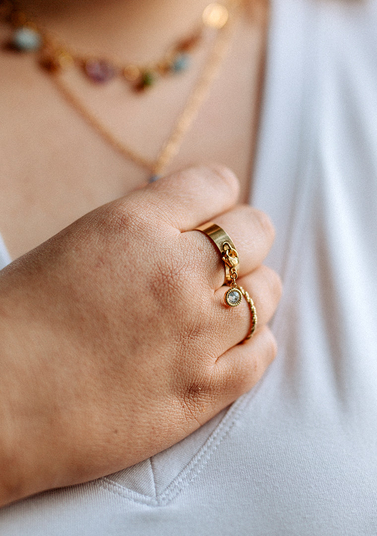 La bague réglable Ina fait partie des quelques bijoux que je ne fabrique pas à l’atelier, Elle est fabriquée par un fournisseur sous-traitant de SIKA, sélectionné pour ces prestations de qualité, Elle est composée d’une monture lisse, ornée d’un anneau, Portez la seule ou personnalisée avec les clips* SIKA,