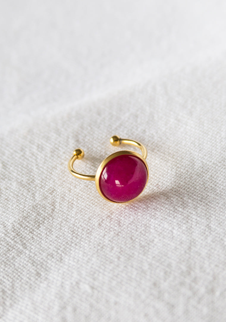 La bague Rosie est fabriquée à la main dans mon atelier, Elle est habillée d’une Agathe rose montée sur un anneau réglable,