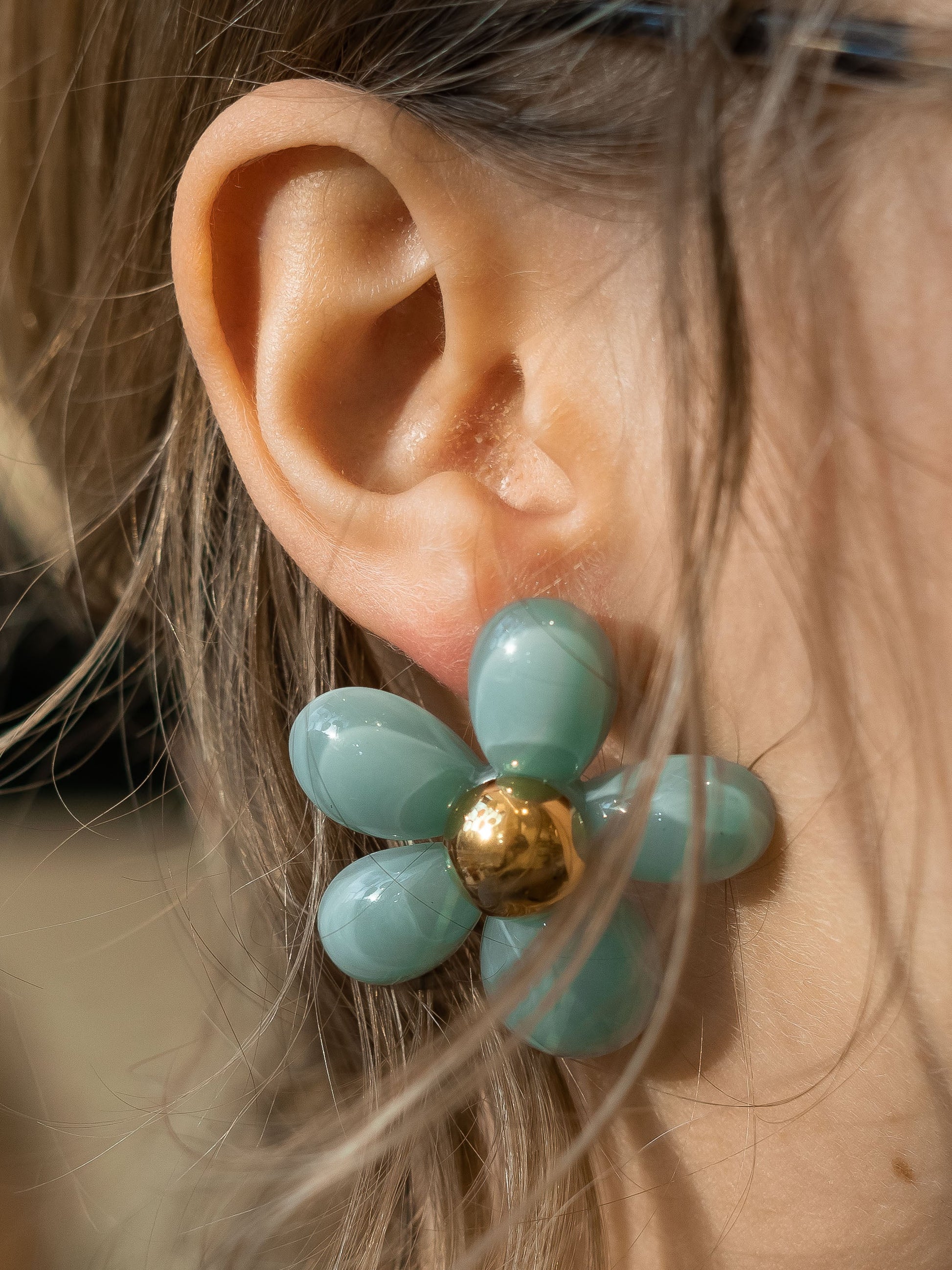 Les boucles Poppy font parties des quelques bijoux que je ne fabrique pas à l’atelier, Elle est fabriquée par un fournisseur sous-traitant de SIKA, sélectionné pour ces prestations de qualité, Elles sont composées d'une grande fleur bleue,