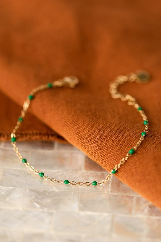 Le bracelet Erica est fabriqué à la main dans mon atelier, Il est composé d’une fine chaine émaillée en noir,