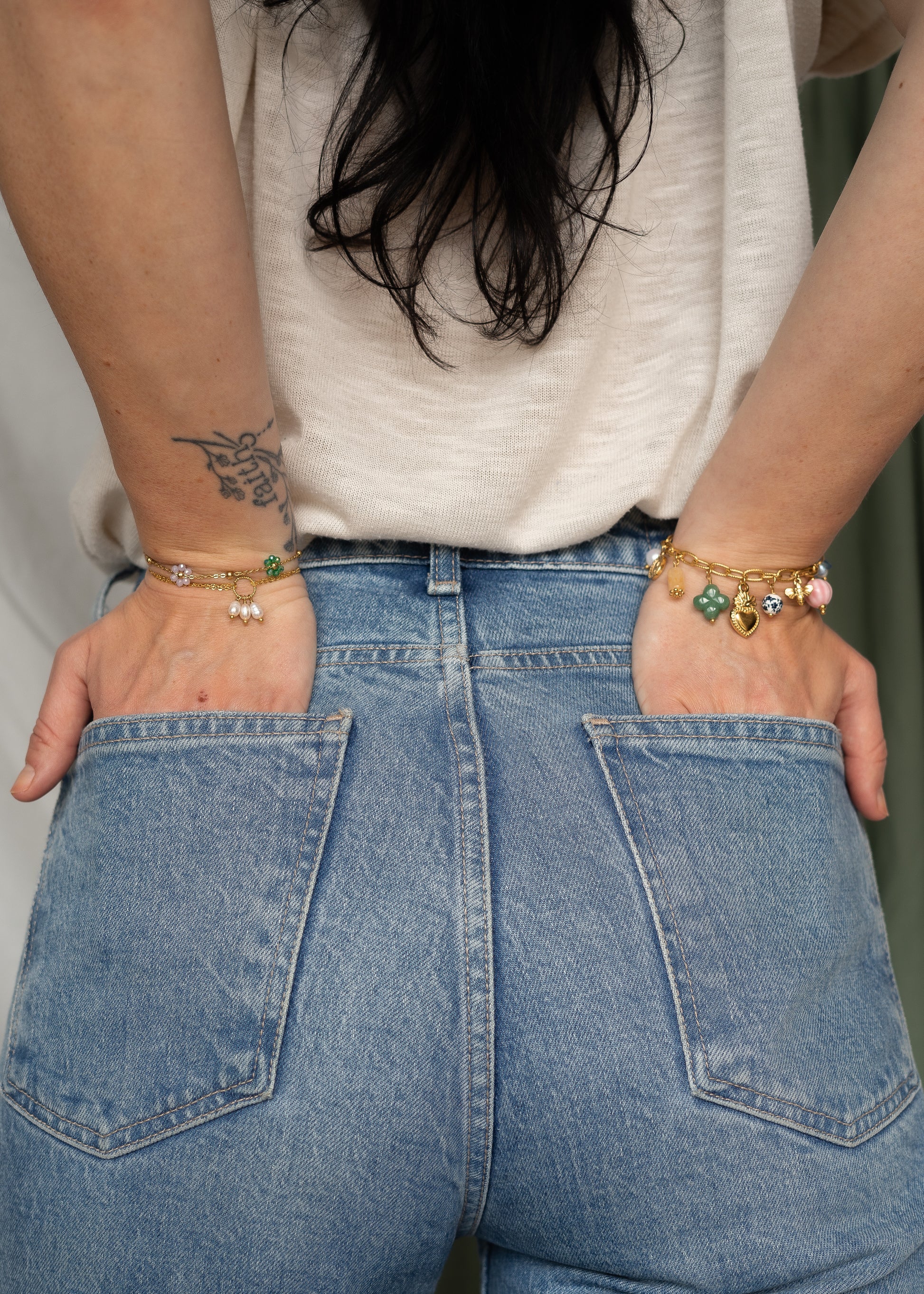 Le bracelet Esperanza est fabriqué à la main dans mon atelier, Il est orné d’une multitude de pampilles dorées, en pierres semi-précieuses, en céramique, ainsi qu'en résine,
