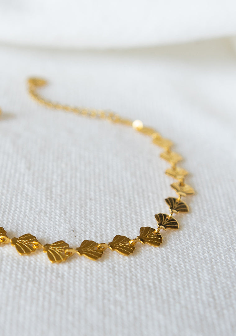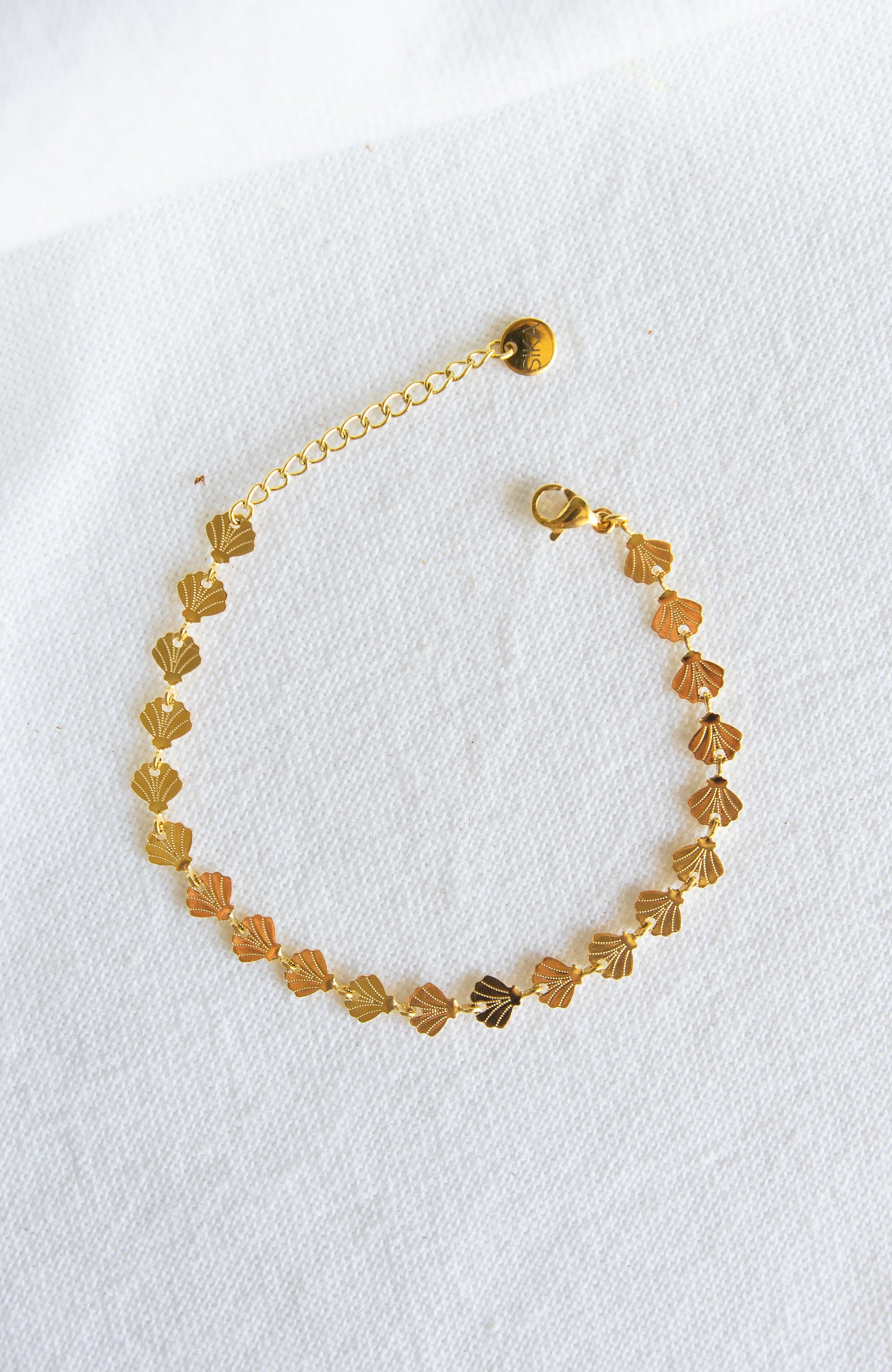 Le bracelet Marina est fabriqué à la main dans mon atelier, Il est composé d’une chaine décorée d’un motif de coquillages,