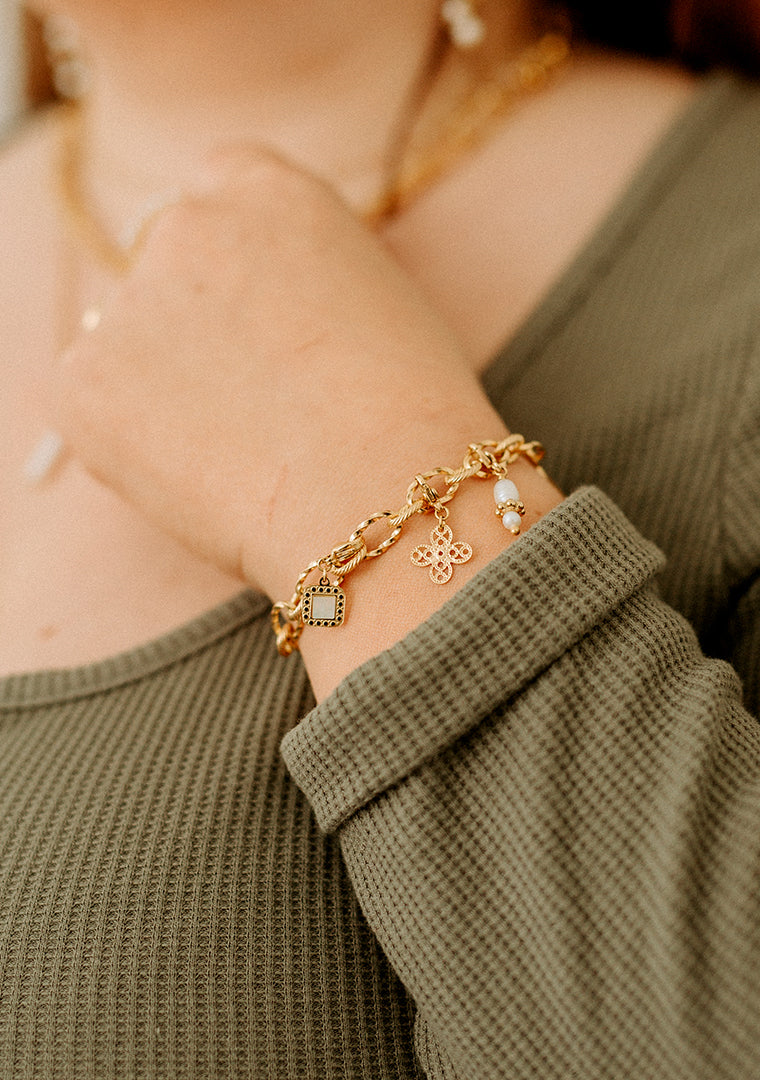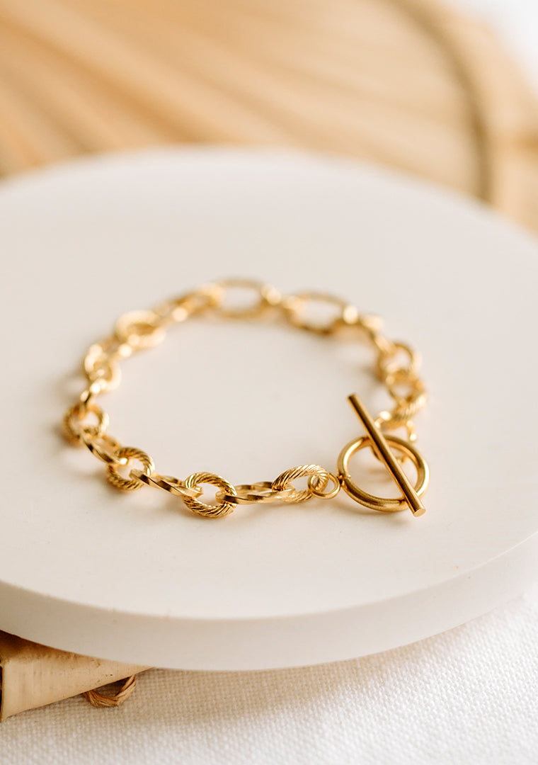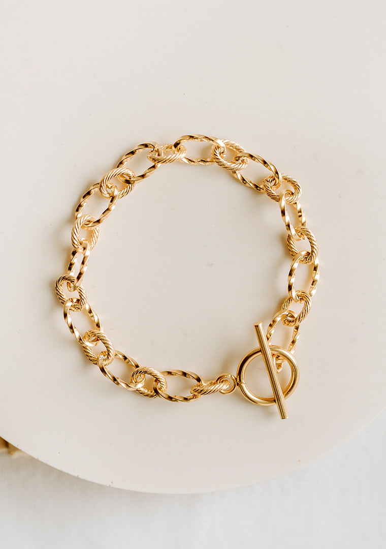 Le bracelet Max est fabriqué à la main dans mon atelier, Il est composé d’une chaine aux maillons asymétriques et d’un fermoir bâton,