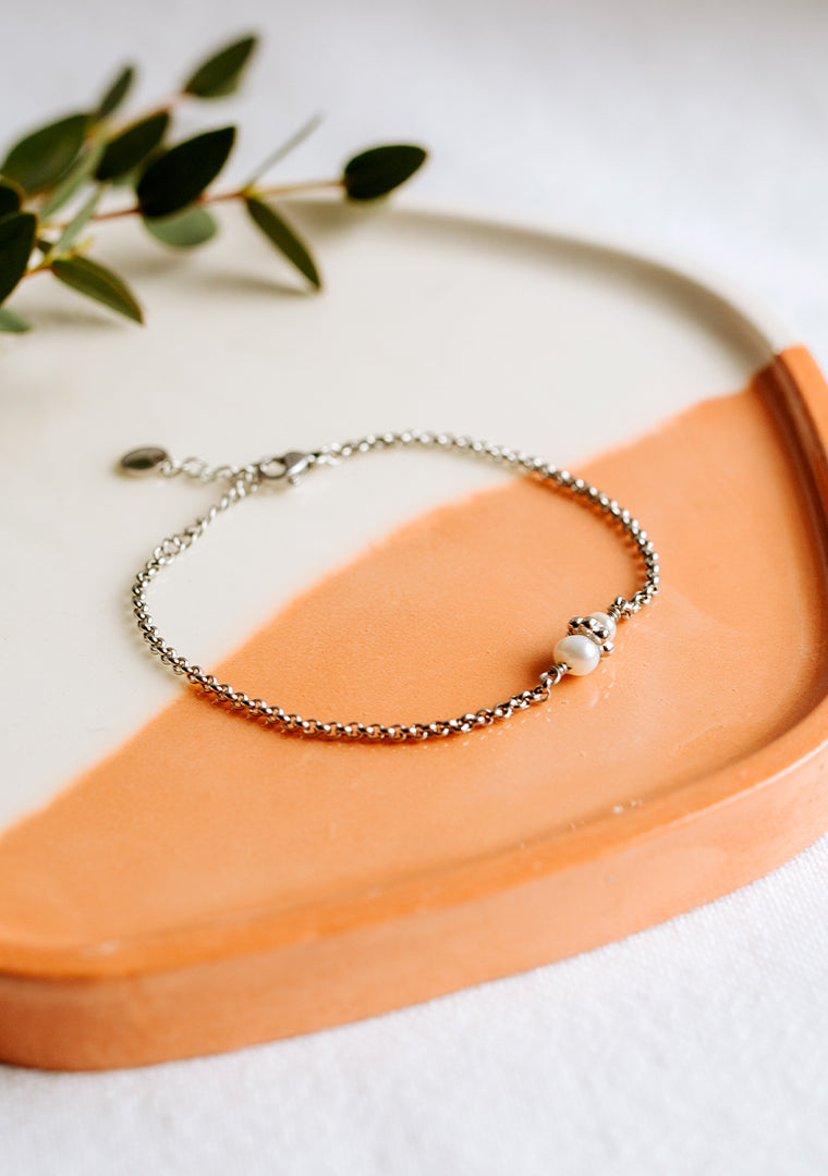 Le bracelet Tisha est fabriqué à la main dans mon atelier, Il est composé d’une chaine aux maillons ronds et de Perles d’eau douce,