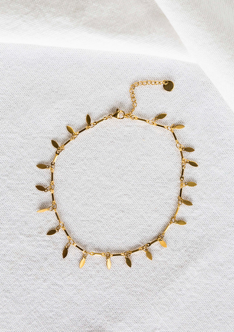 La chaine de cheville Lou est fabriquée à la main dans mon atelier, Elle est composée d’une chaine décorée de petites médailles en forme de goutte