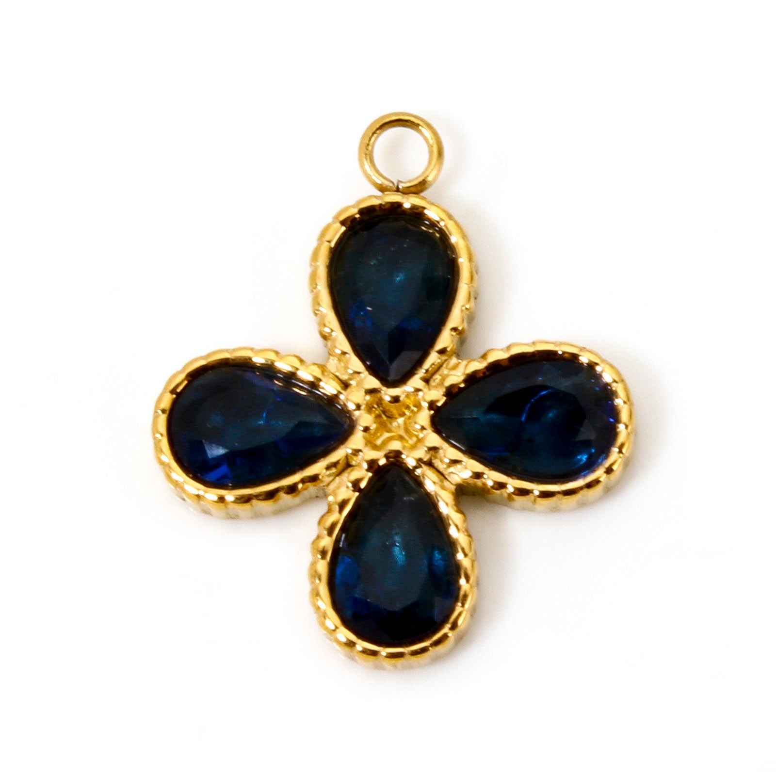 Charms Trefle Croix Strass Bleu