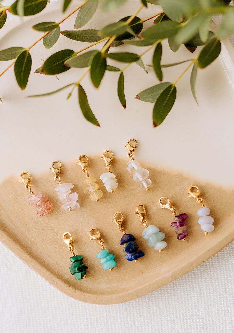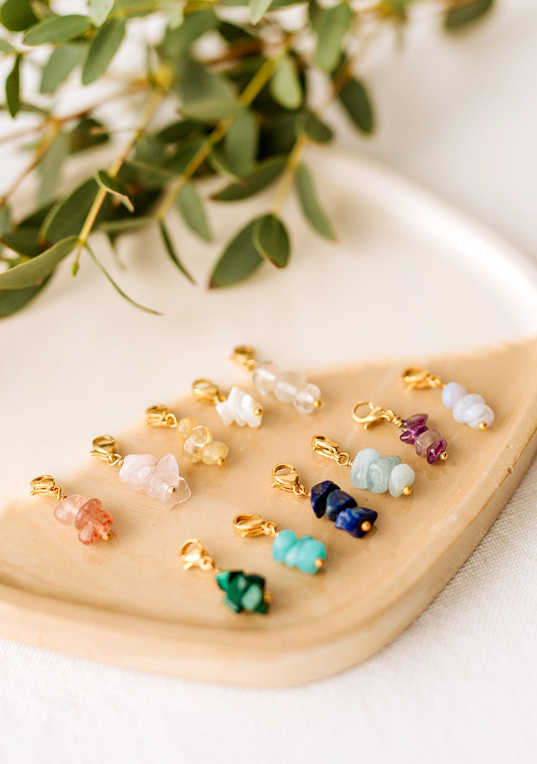 Les clips Effia sont fabriqués à la main dans mon atelier, Il sont composés d’un fermoir mousqueton et de pierres semi-précieuse dont la couleur est au choix :