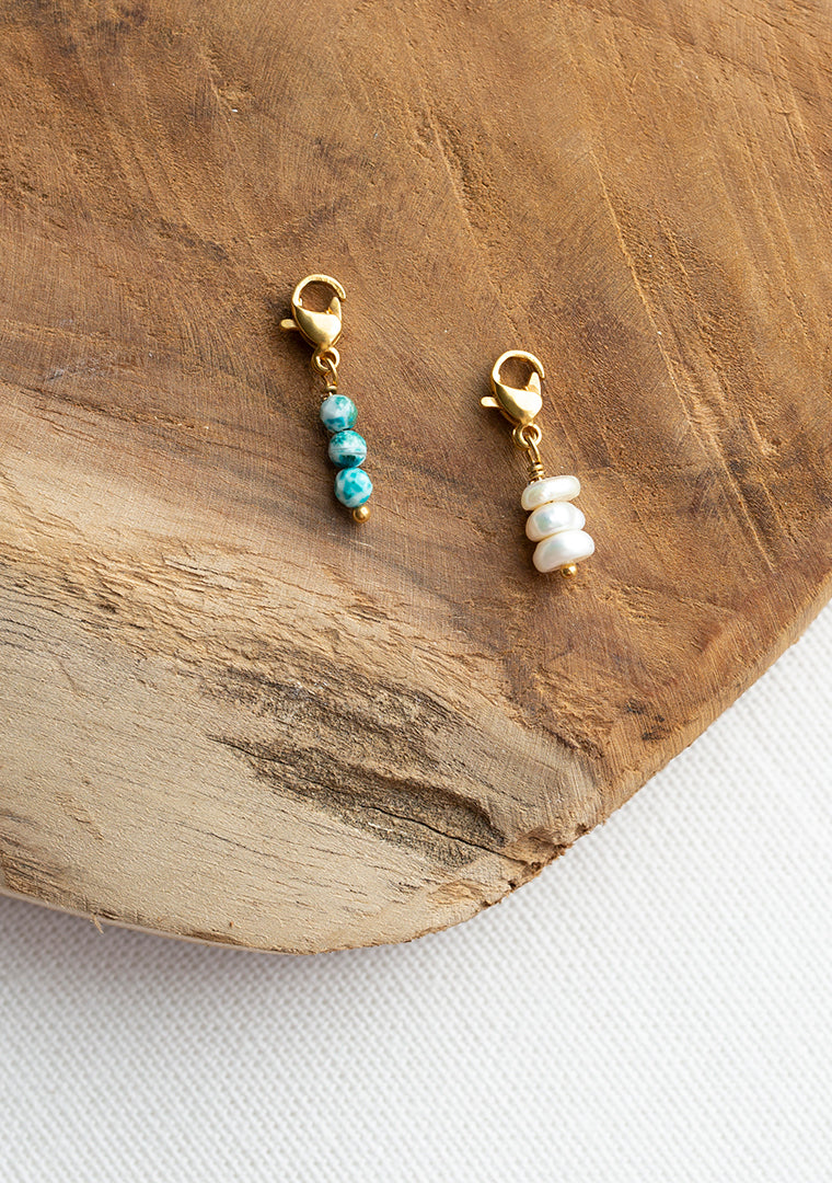 Les clips Efi sont fabriqués à la main dans mon atelier, Ils sont composés d’un fermoir mousqueton et de 3 Turquoise ou Perles d’eau douce, au choix,