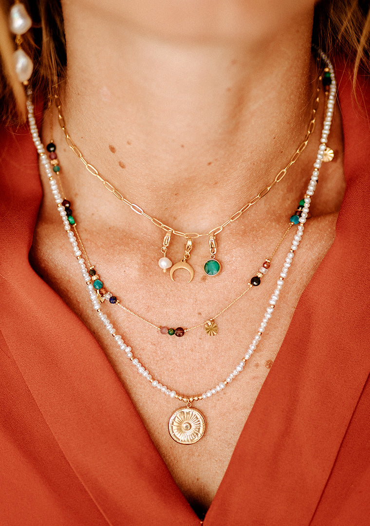 Attention, les bijoux sont fabriqués avec des pierres semi-précieuses dont la couleur et la taille peuvent varier d’un bijou à l’autre,