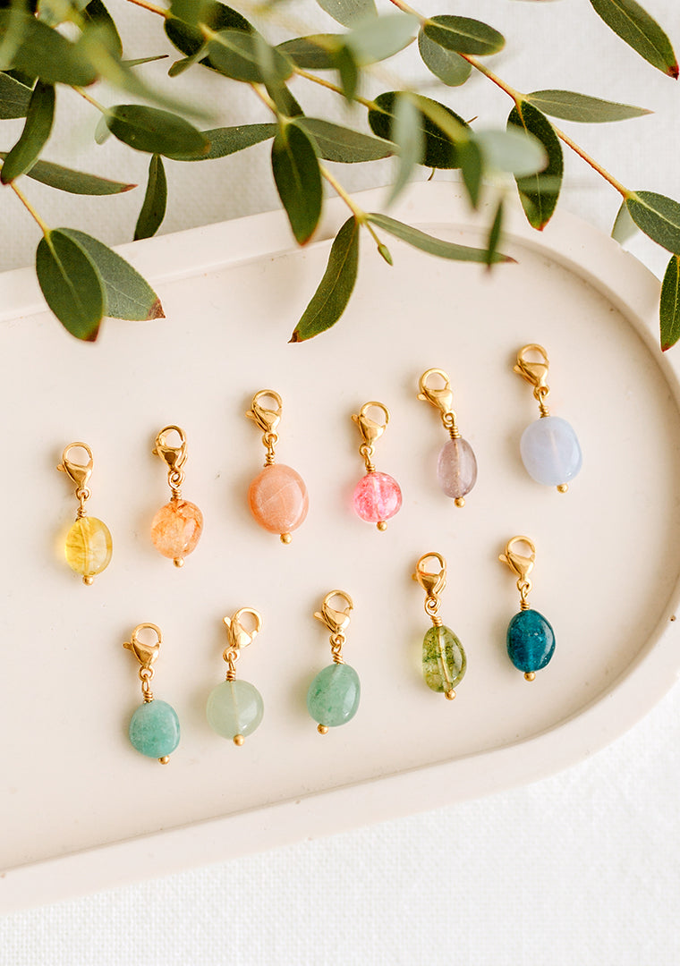 Les clips Tina sont fabriqués à la main dans mon atelier, Il sont composés d’un fermoir mousqueton et d’une pierre semi-précieuse dont la couleur est au choix :