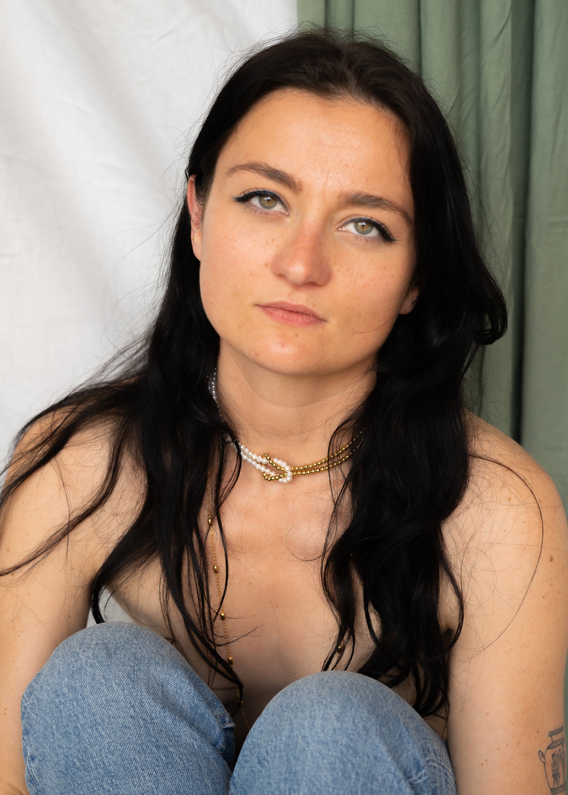 Le collier Bianca est fabriqué à la main dans mon atelier, Il est composé de perles d'eau douce ainsi que de perles dorées, tissées en deux rangs entrelacés,