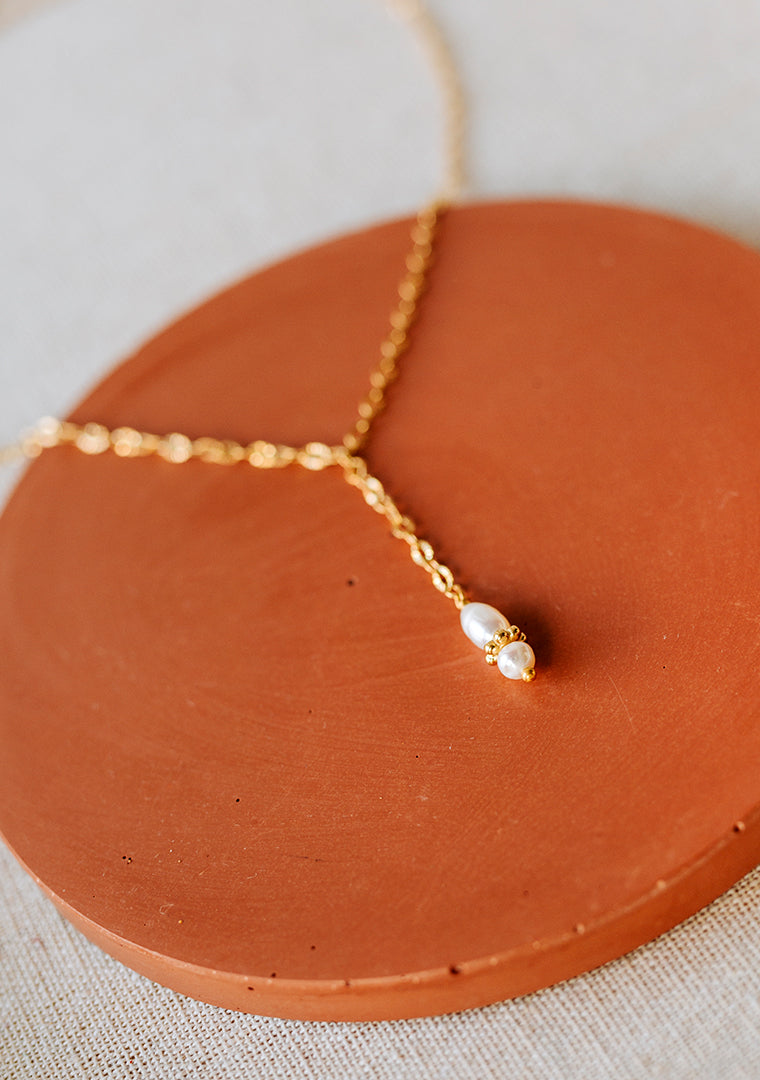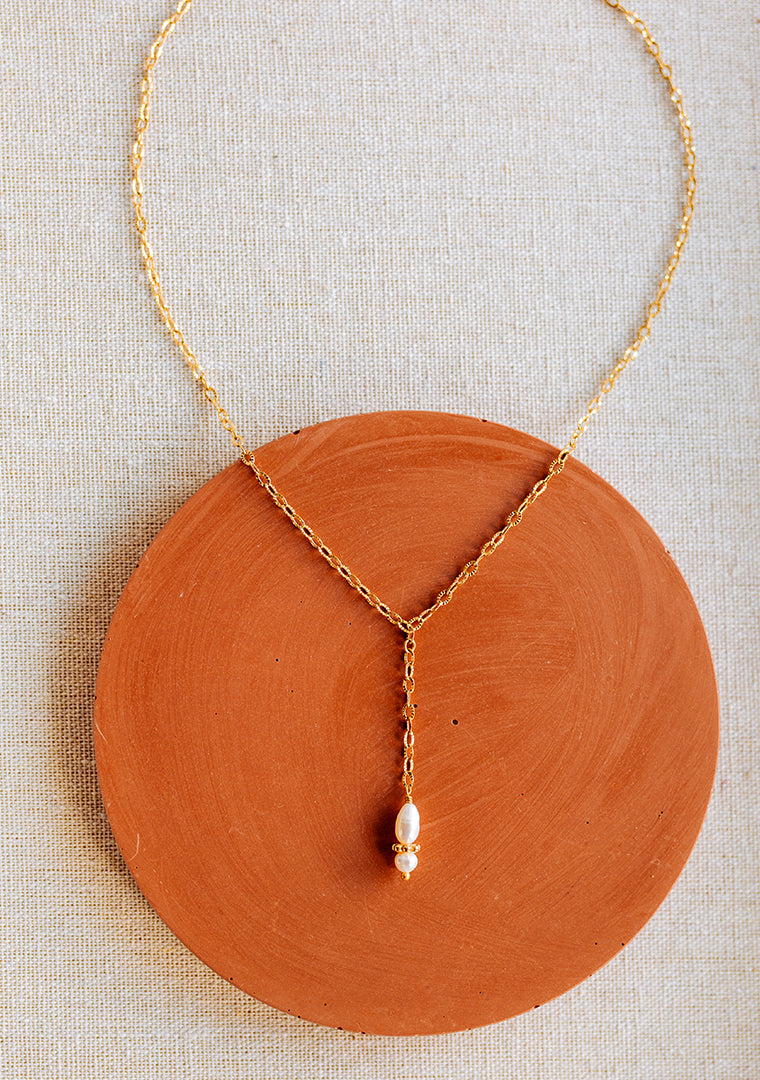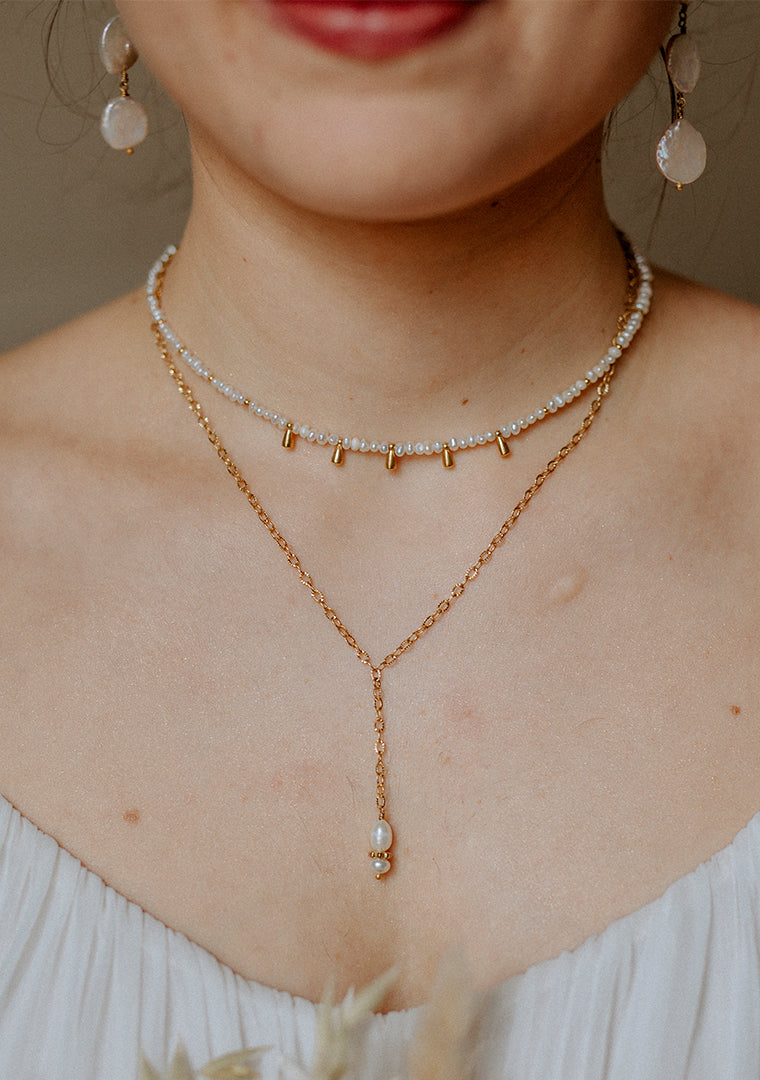 Le collier Calypso est fabriqué à la main dans mon atelier, Il est monté sur une chaine aux maillons striés et orné d’un pendentif décoré de Perles d’eau douce,