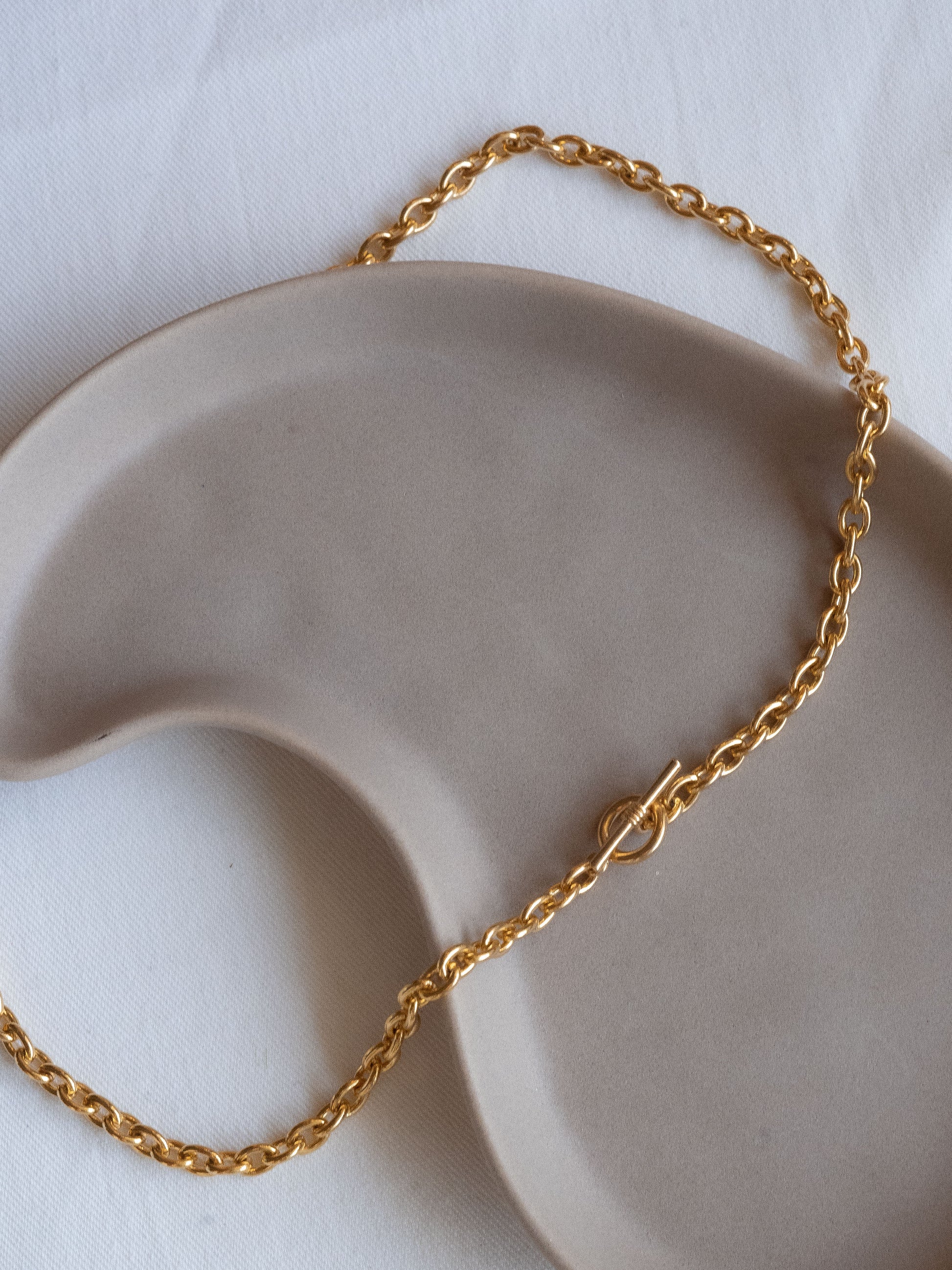 Le collier Charlie est fabriqué à la main dans mon atelier. Il est composé d’une chaine forçat epaisse et est orné d'un fermoir barre.