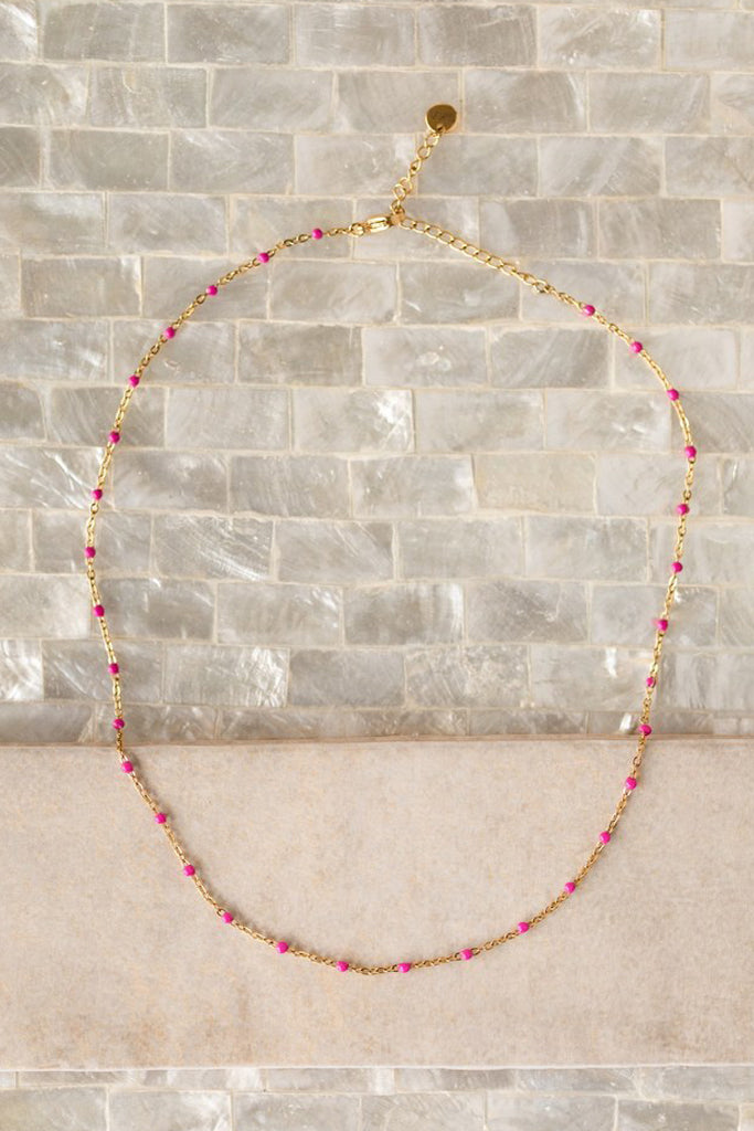 Le collier Erica est fabriqué à la main dans mon atelier, Il est composé d’une fine chaine émaillée en blanc,