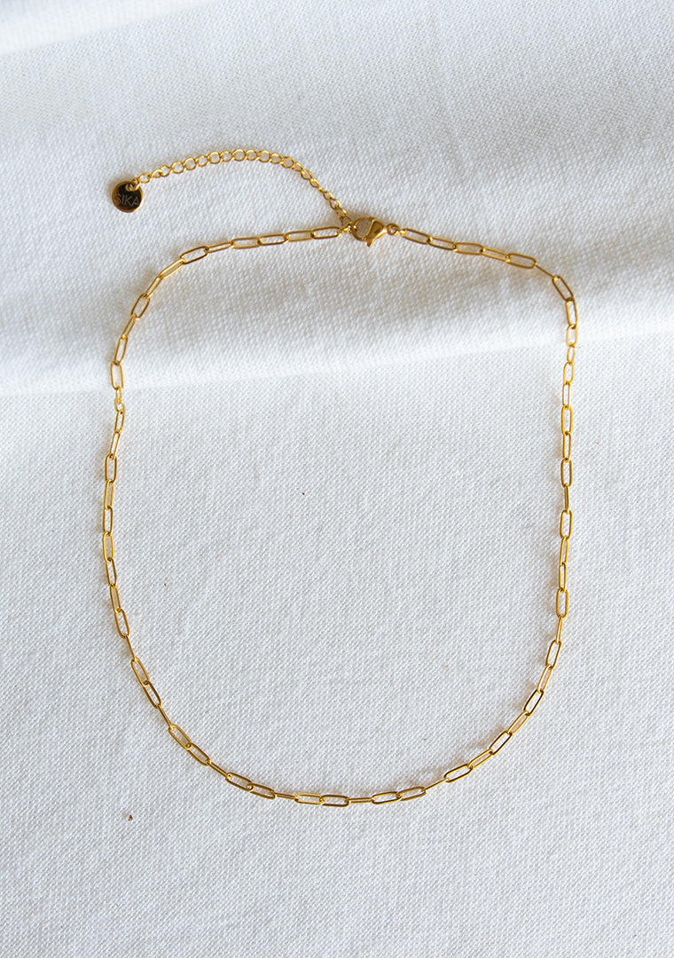 Le collier ras de cou Gabriel est fabriqué à la main dans mon atelier, Il est composé d’une chaine aux mailles rectangulaires,