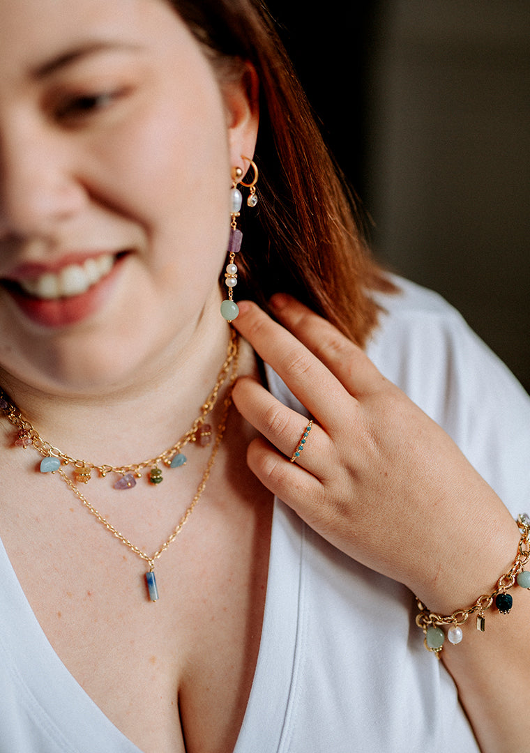 Attention, les bijoux sont fabriqués avec des pierres semi-précieuses dont la couleur et la taille peuvent varier d’un bijou à l’autre,