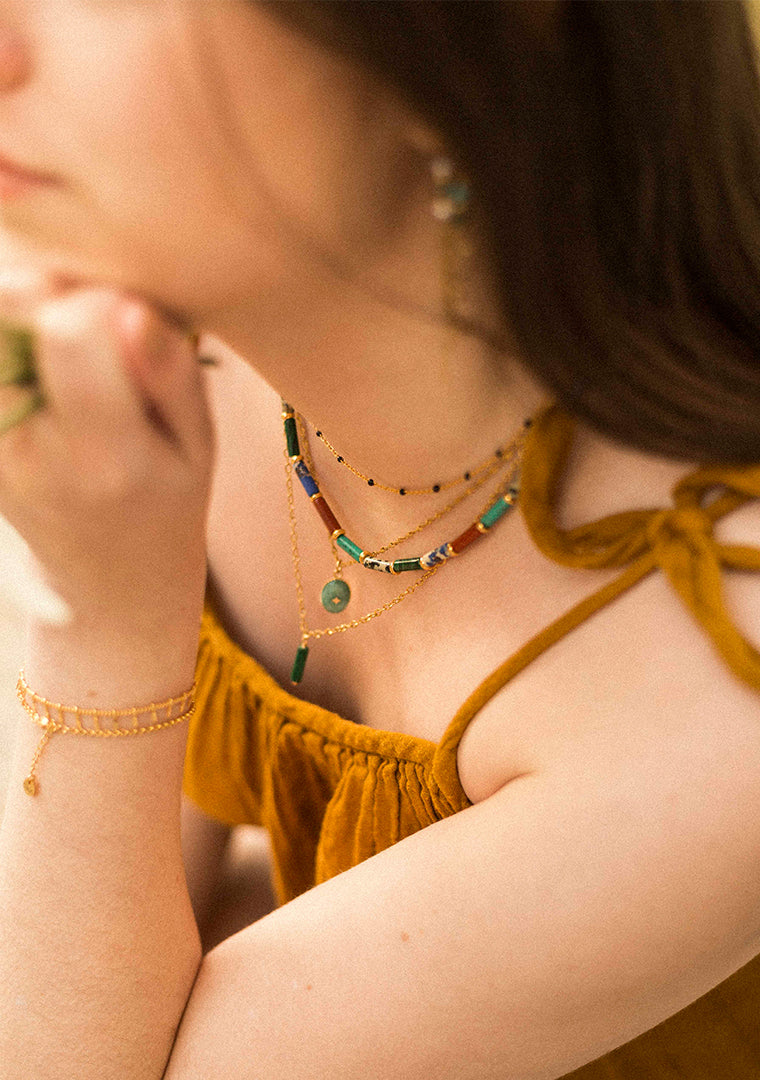 Attention, les bijoux sont fabriqués avec des pierres semi-précieuses dont la couleur et la taille peuvent varier d’un bijou à l’autre,