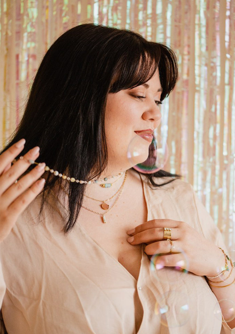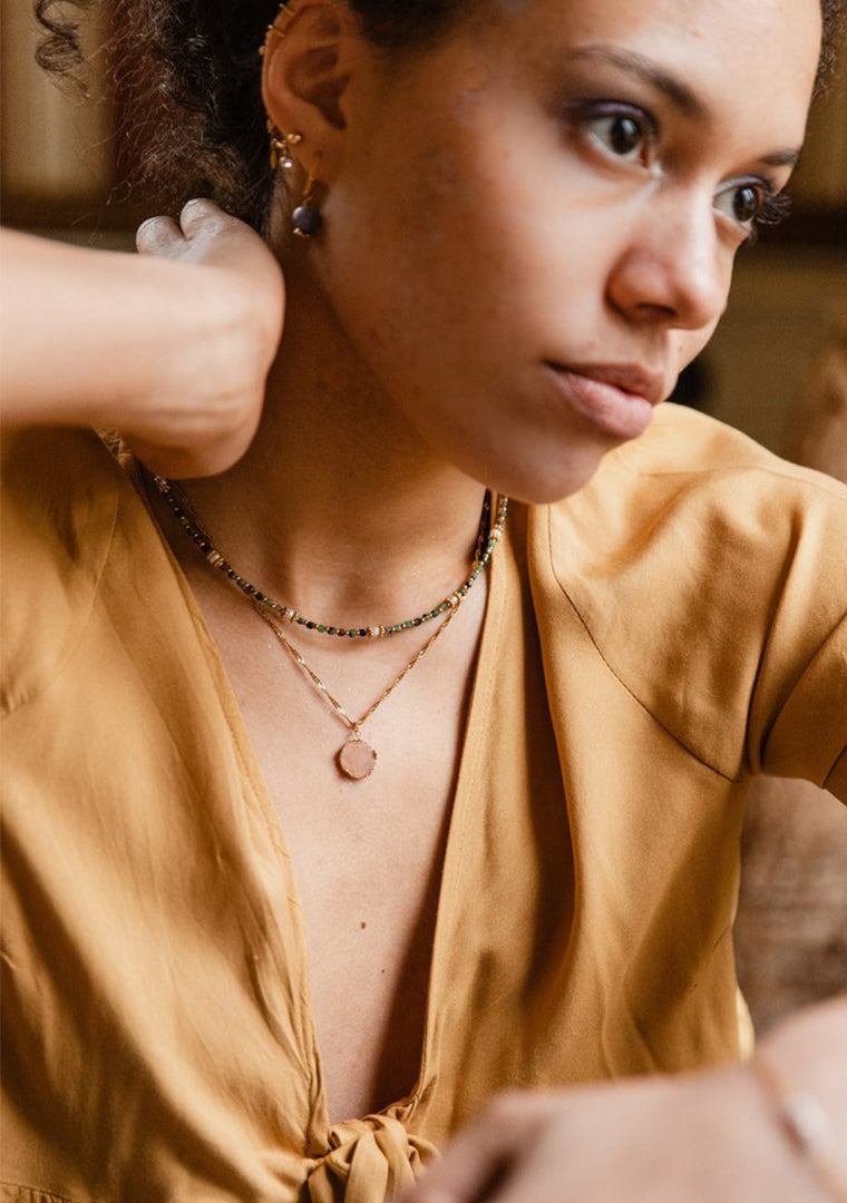 Attention, les bijoux sont fabriqués avec des pierres semi-précieuses dont la couleur et la taille peuvent varier d’un bijou à l’autre,