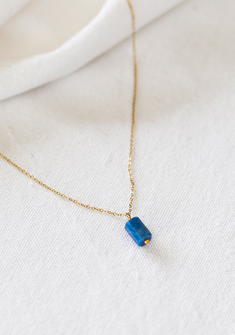 Le collier Tina est fabriqué à la main dans mon atelier, Il est monté sur une chaine fine ornée d’une Lapis-Lazuli,