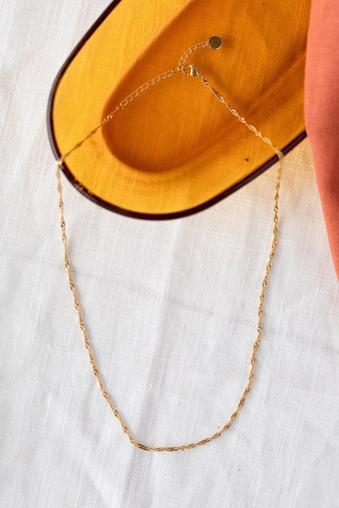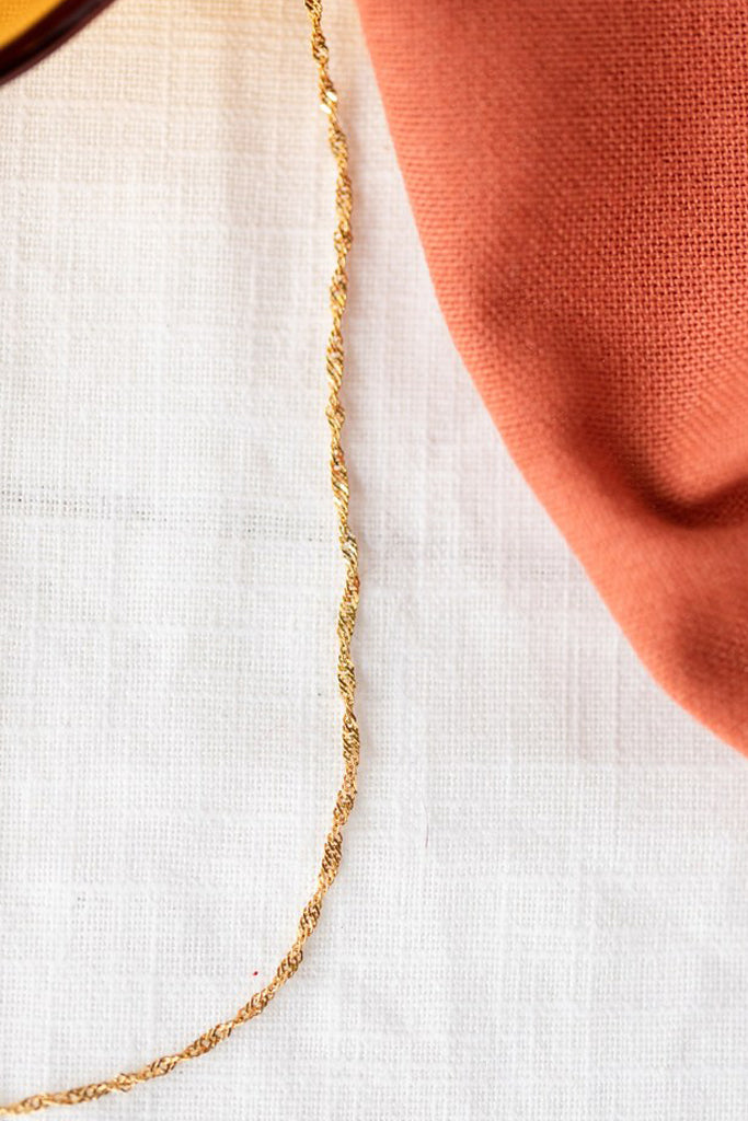 Le collier Vasco est fabriqué à la main dans mon atelier, Il est composé d’une chaîne aux mailles torsadées qui suivent vos mouvements,
