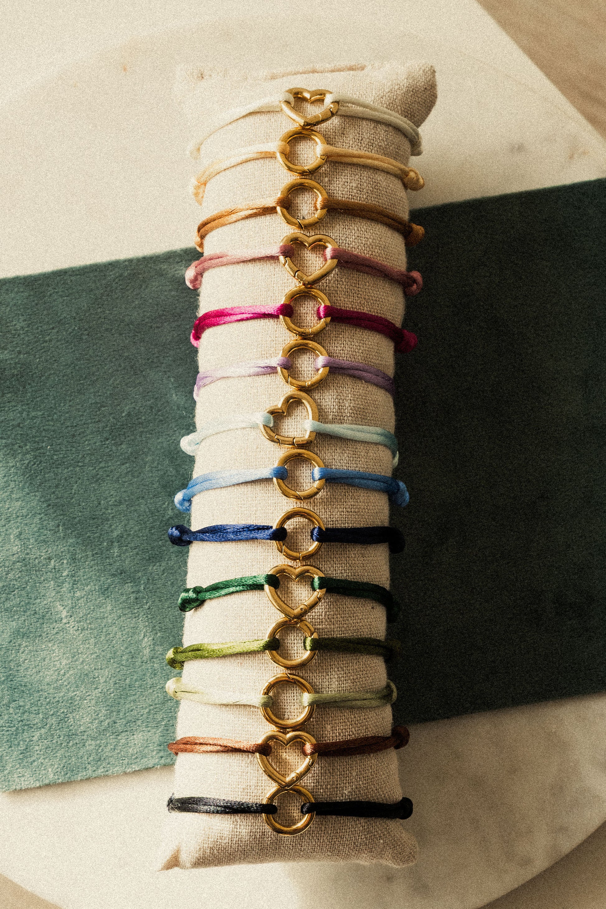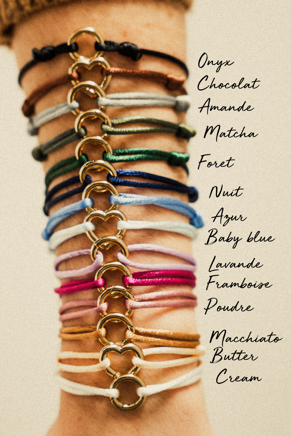 Le bracelet personnalisable Tessa est fabriqué à la main dans mon atelier. Il est composé d'un cordon en satin ajustable et entièrement modulable selon vos envies.