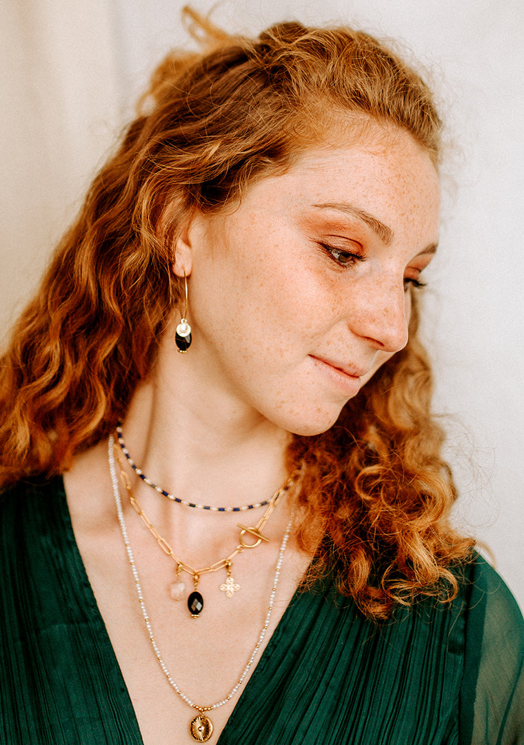 Attention, les bijoux sont fabriqués avec des pierres semi-précieuses dont la couleur et la taille peuvent varier d’un bijou à l’autre,