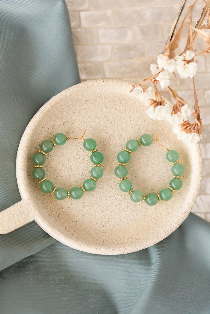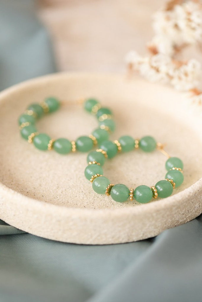 Les créoles Osiris sont fabriqués à la main dans mon atelier, Elles sont composées de perles rondes en Aventurine ainsi que de perles dorées,