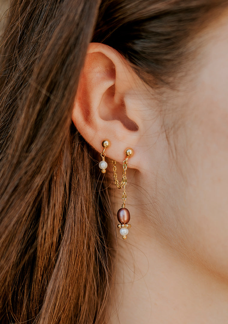 Double boucles Calypso - Perles d’eau douce blanches & rose