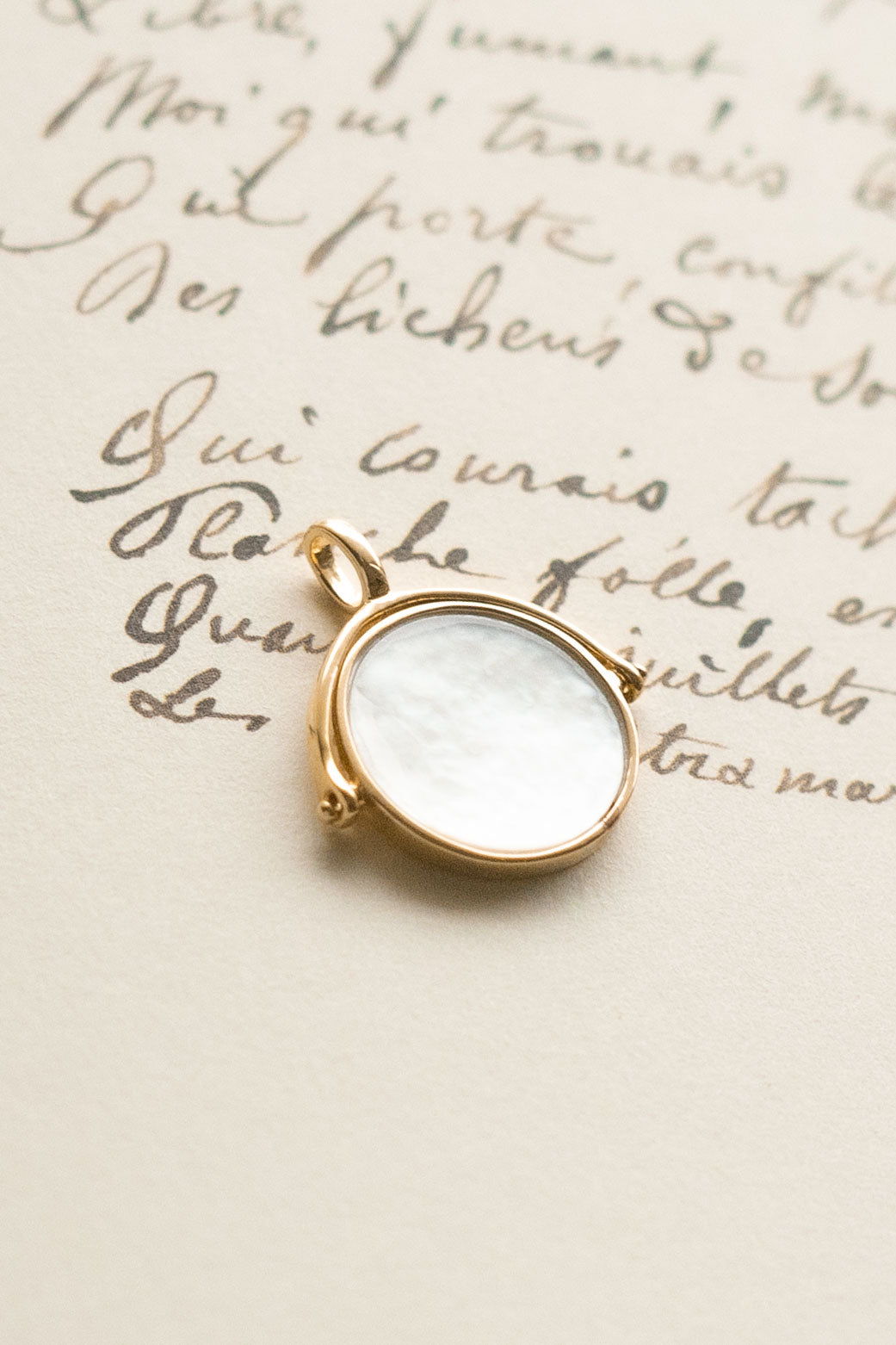 Médaille à graver réversible Laure - Plaqué or & Nacre