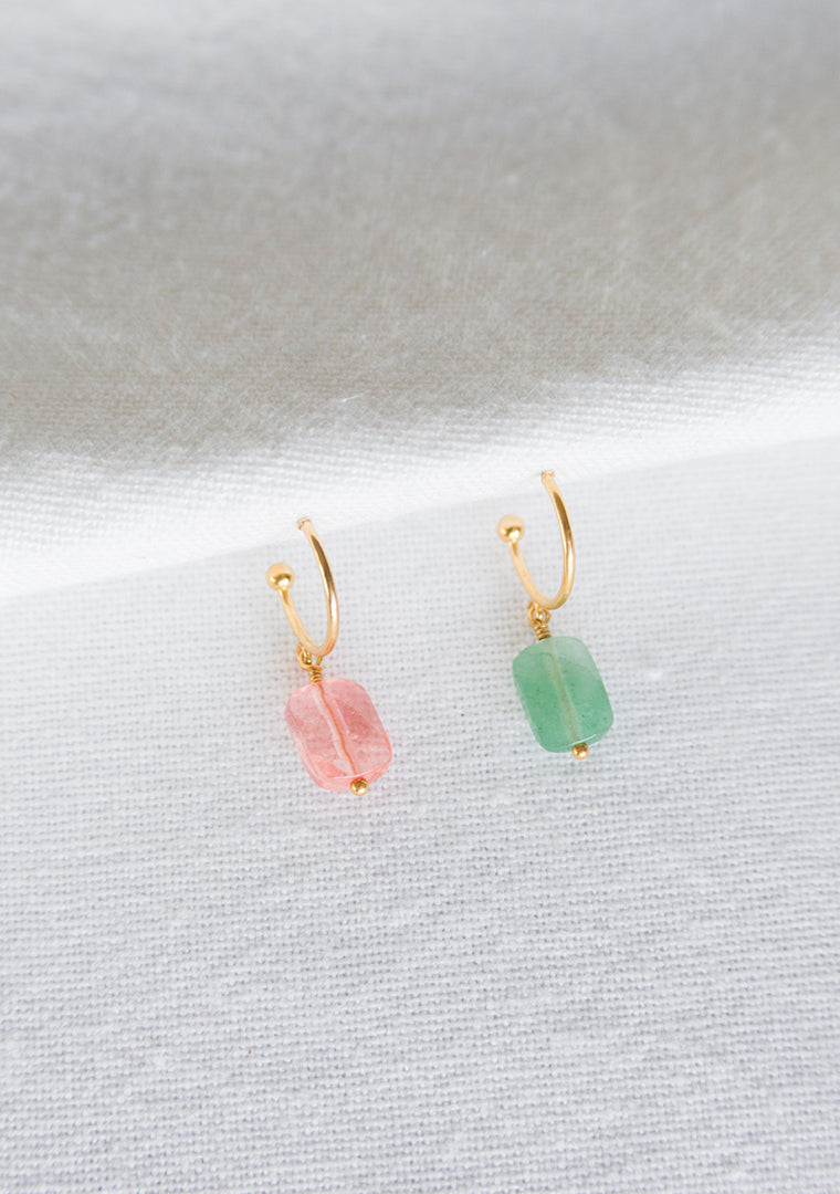 Les mini créoles Ada sont fabriquées à la main dans mon atelier, Elles sont composées d’un pendent en pierre semi-précieuses, au choix :