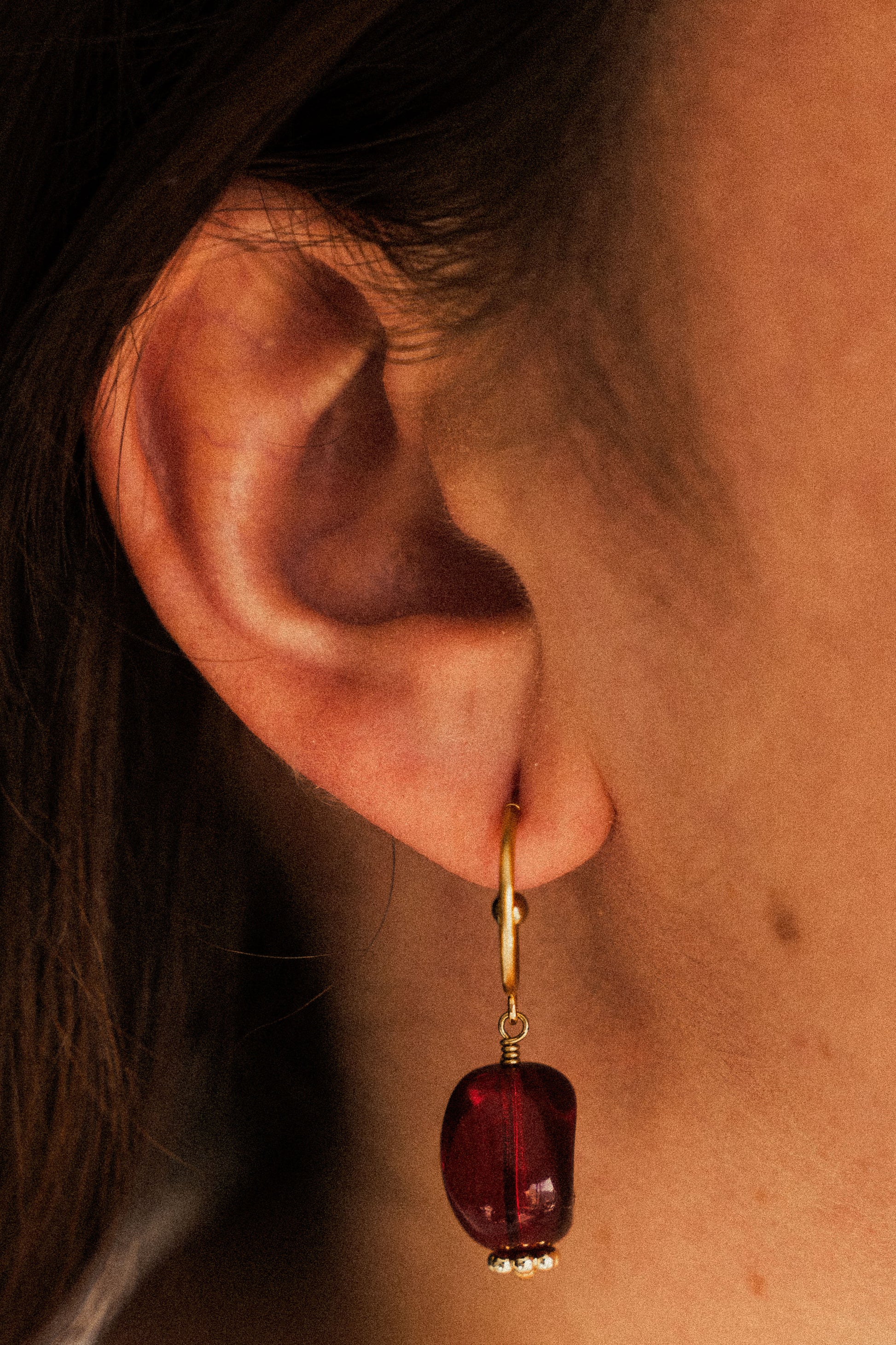 Les mini créoles Aveline sont fabriquées à la main dans mon atelier. Elles sont décorées d’un pendent en perle de verre dont la couleur est au choix :