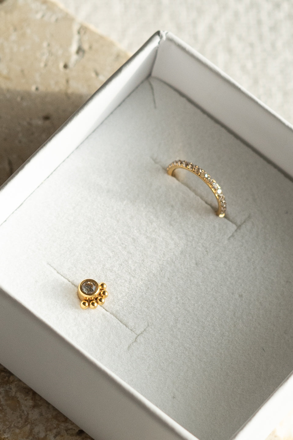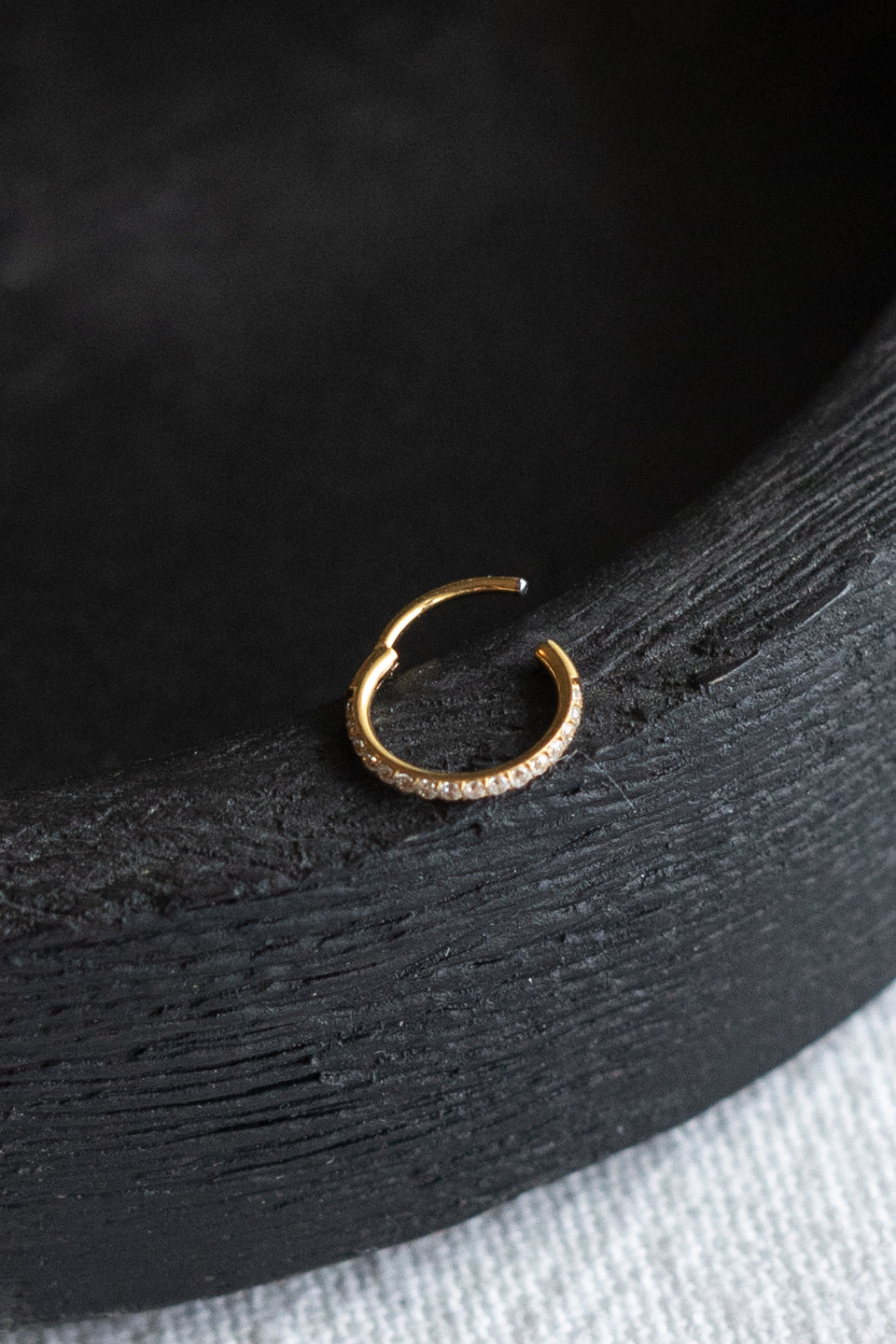 Le piercing Estrella n'est pas fabriqué dans mon atelier mais par un fournisseur sous-traitant de SIKA sélectionné pour ces prestations de qualité, L'anneau de la créole est pavée de strass blanc,