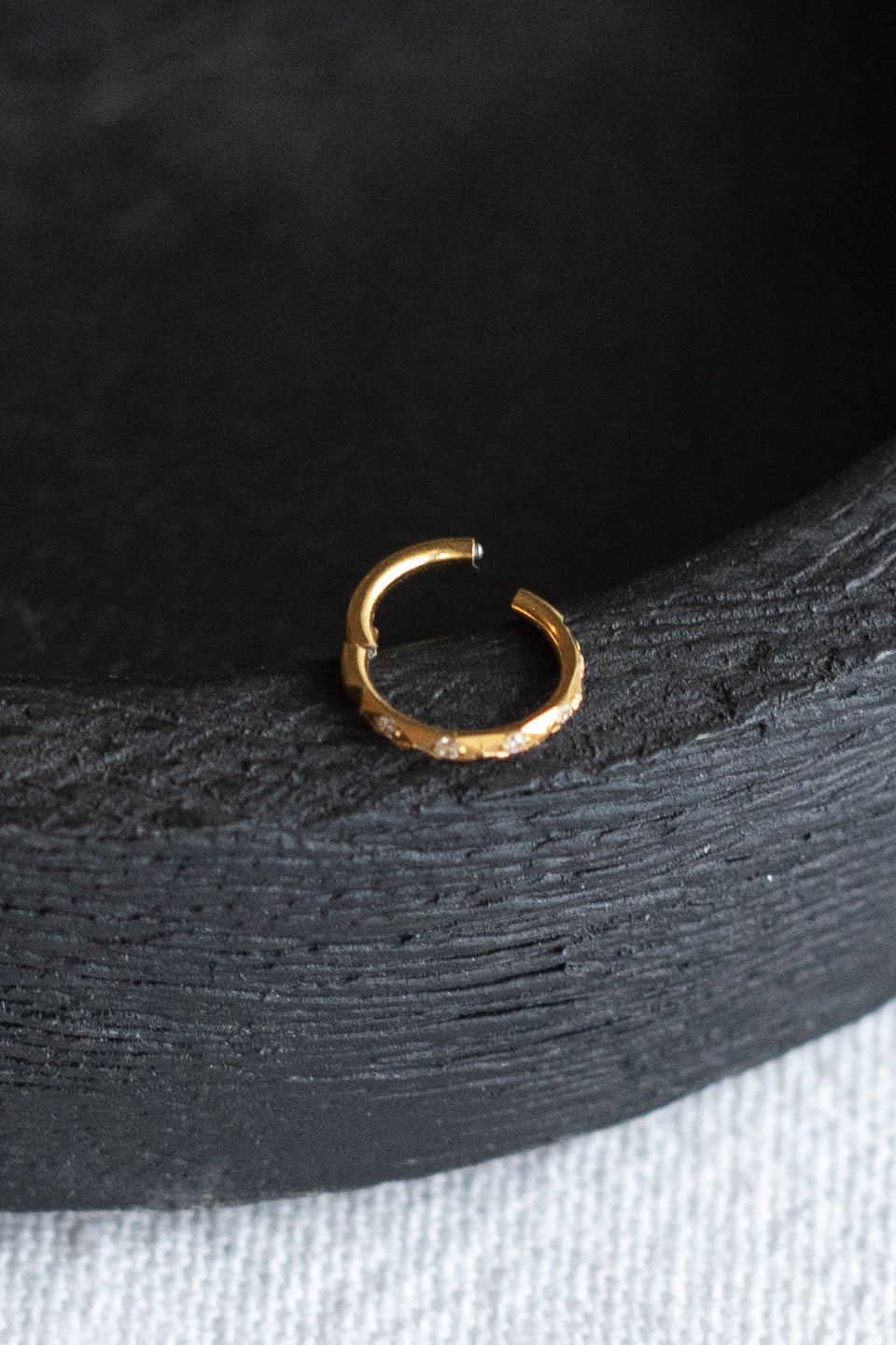 Le piercing Luz n'est pas fabriqué dans mon atelier mais par un fournisseur sous-traitant de SIKA sélectionné pour ces prestations de qualité, La créole est composé d'un anneau facetté et inrcusté de strass blancs
