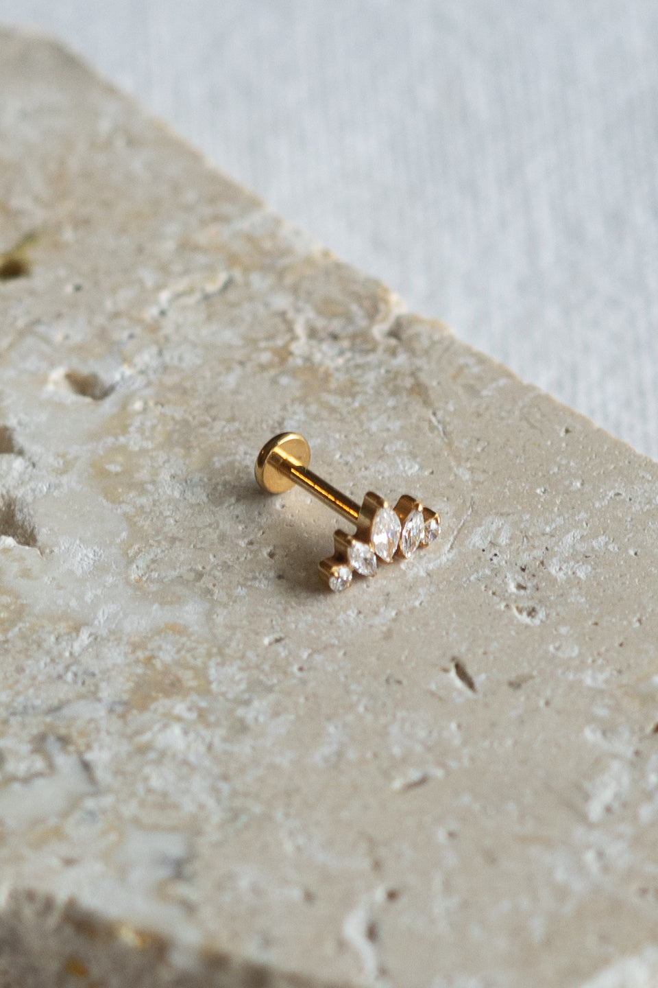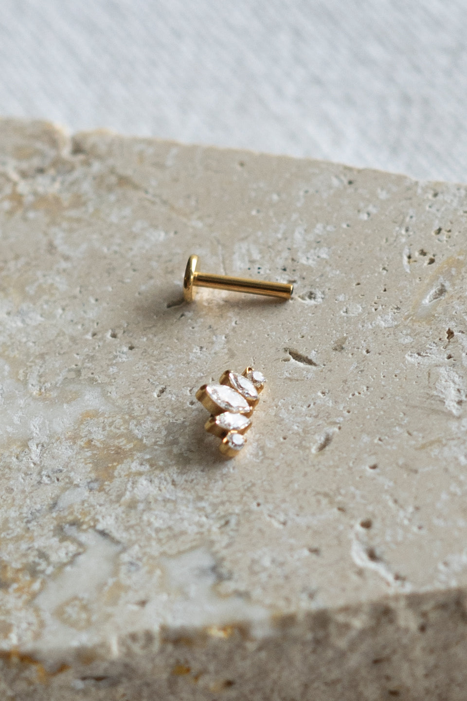Le piercing Rosa n'est pas fabriqué dans mon atelier mais par un fournisseur sous-traitant de SIKA sélectionné pour ces prestations de qualité, Il est orné de 5 strass formant une couronne,