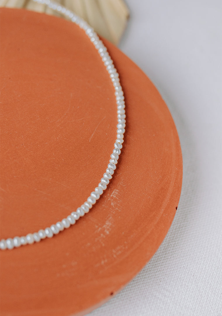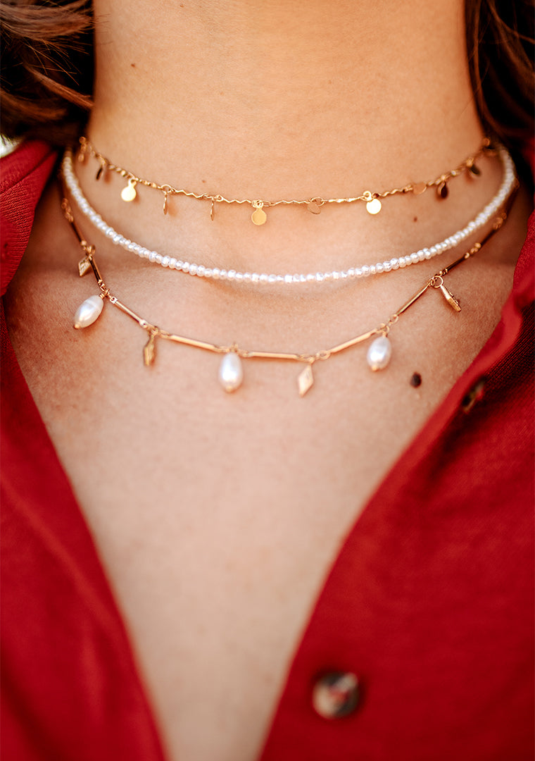 Le collier ras de cou Nora est fabriqué à la main dans mon atelier, Il est composé d’un rang de perles d’eau douce rondes et irrégulières,
