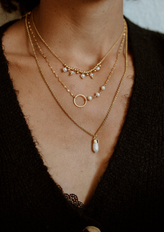 Dans mon atelier Rennais, l’acier inoxydable, se mêle aux pierres et aux perles avec sensibilité et poésie afin de créer la combinaison parfaite…