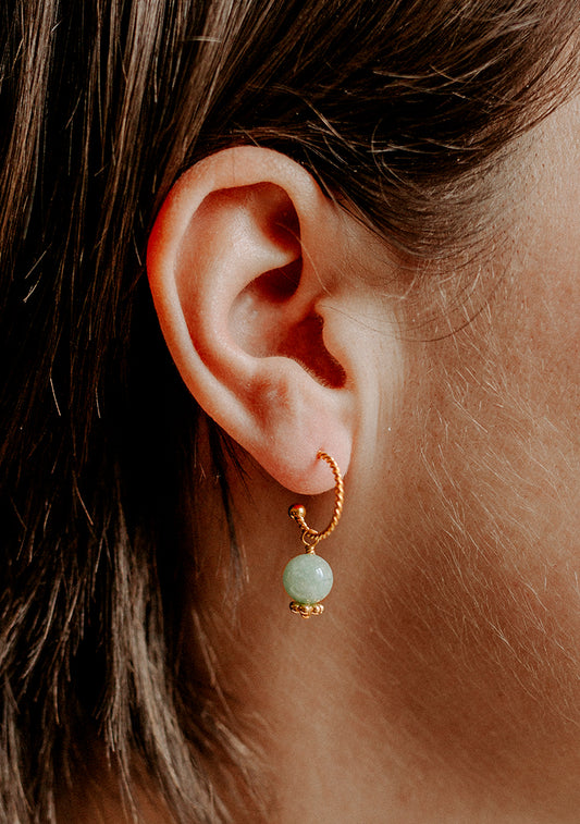 Double boucles Calypso - Perles d’eau douce blanches & verte