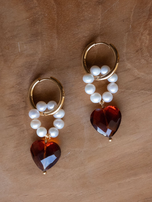 Boucles Abel - Perles d'eau douce & coeur caramel
