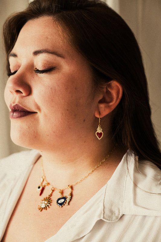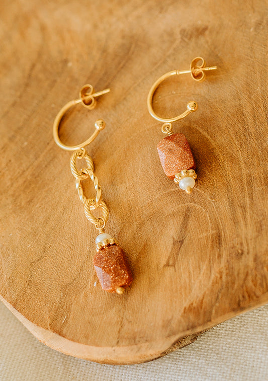Boucles Abel - Perles d'eau douce & coeur caramel