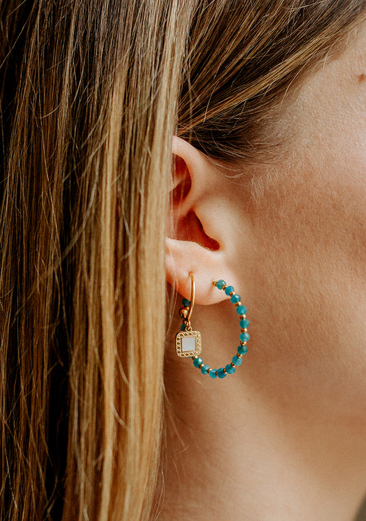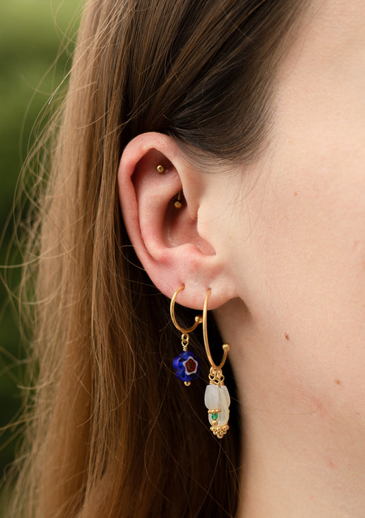 Mini créoles Théa - Pierre de soleil bleu nuit